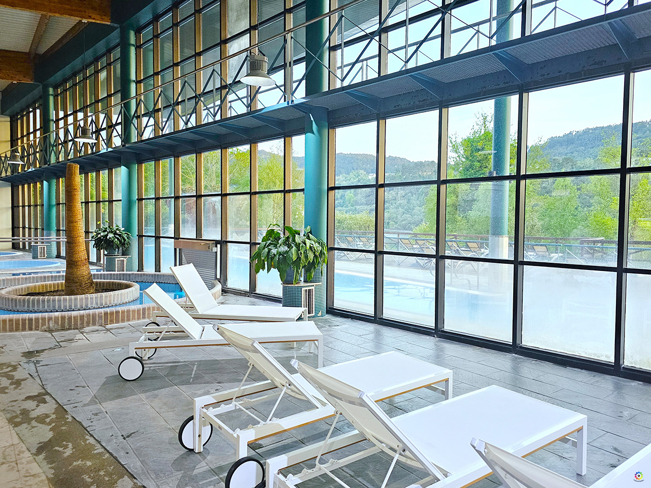 El lugar ideal para relajarte en la Ruta del Vino de O Ribeiro. Un hotel con 98 habitaciones , casi todas con terraza y muchas de ellas con unas preciosas vistas al río Miño y que además de todos los servicios de cualquier hotel cuenta con un Balneario con aguas Hipertermales, de mineralización media y Sulfuradas, que alberga el Termarium, con terapias de lo más innovadoras en balnearios: bañeras aromáticas, jacuzzi, cabinas húmedas y secas, piscinas de contraste, duchas aromáticas, sillones térmicos. En la otra parte del Balneario: bañeras de hidromasaje, chorros, maniluvios, pediluvios, chorro lumbar, ducha vichy, sauna, parafango, etc. Tiene una piscina exterior con zona de solarium y con unas preciosas vistas al río.