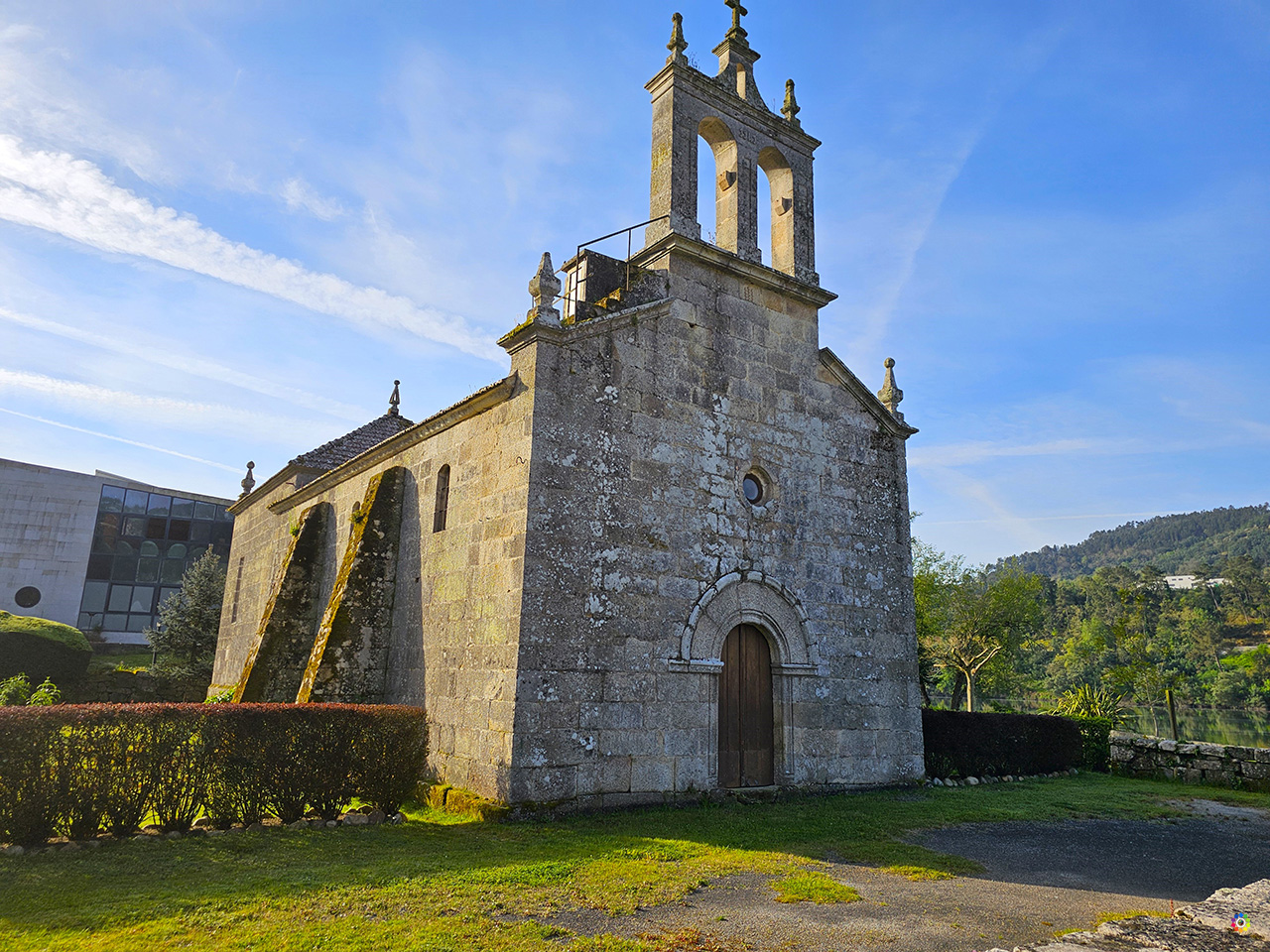 Si sales a dar un paseo por los alrededores del hotel, te lo recomiendo porque la ribera del rio es una zona preciosa, te encontrarás con la Iglesia de Santa Baia de Laias, una iglesia de estilo románico del siglo XI, que fue la iglesia parroquial de Laias hasta el año 1971, año en el cual se sustituyó por una nueva junto a la carretera nacional, debido a las inundaciones por la construcción del embalse. En el arco de la portada hay una inscripción en la que se lee: » Esta iglesia es refugio sagrado» ( las condenas podrían transformarse en penitencias religiosas).