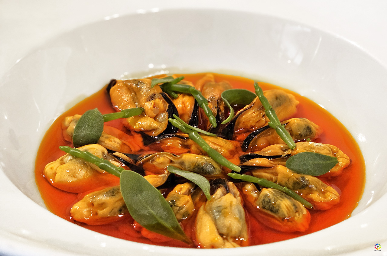 Bombón de mejillón con tomate y caviar