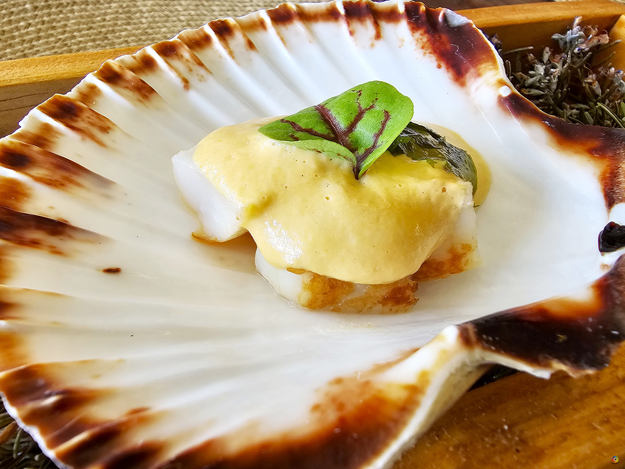 Foie de rape con crema de coral