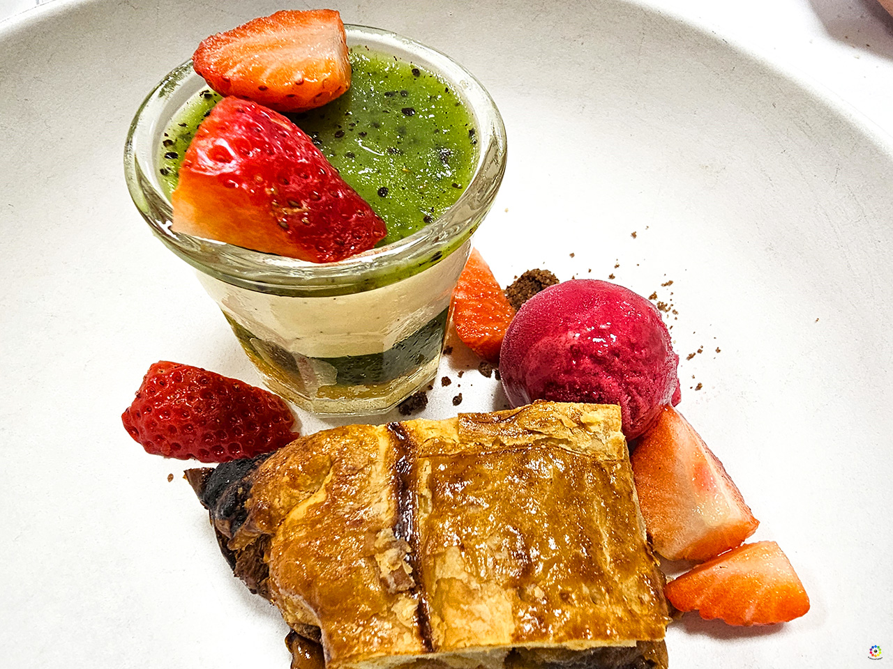 Armán Doce 2021. Bodega Casal de Armán. - Trufa de chocolate blanco y albahaca / Nube de fruta de la pasión con mango