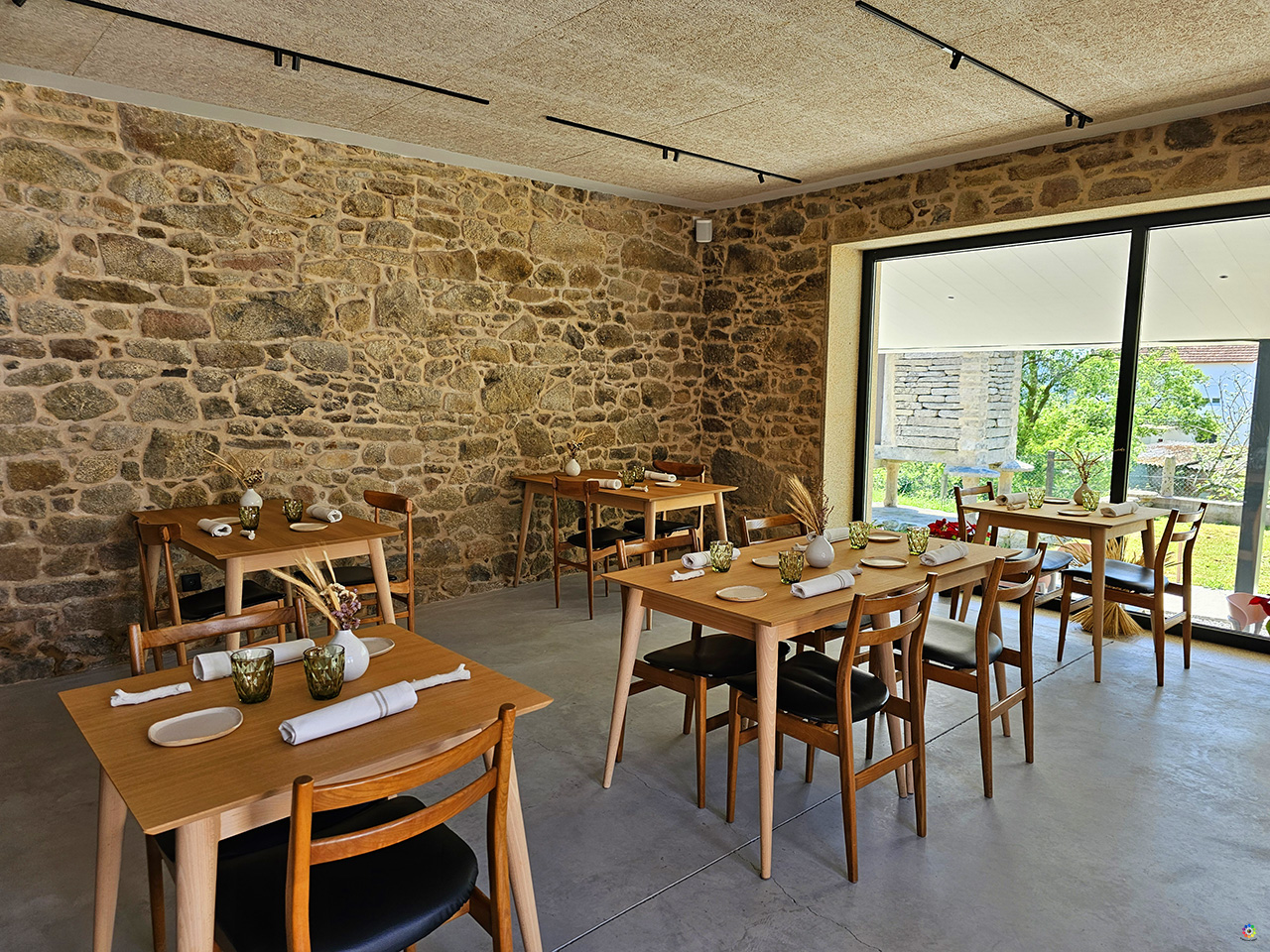 La rehabilitación del antiguo secadero de la finca familiar para convertirlo en O Secadeiro fue un proyecto que se gestó durante años y finalmente se materializó, a pesar de los desafíos causados por la pandemia. El resultado es un espacio encantador, una construcción de granito que ofrece vistas panorámicas del valle del río Donas y de las fincas circundantes donde cultivan su propia huerta.