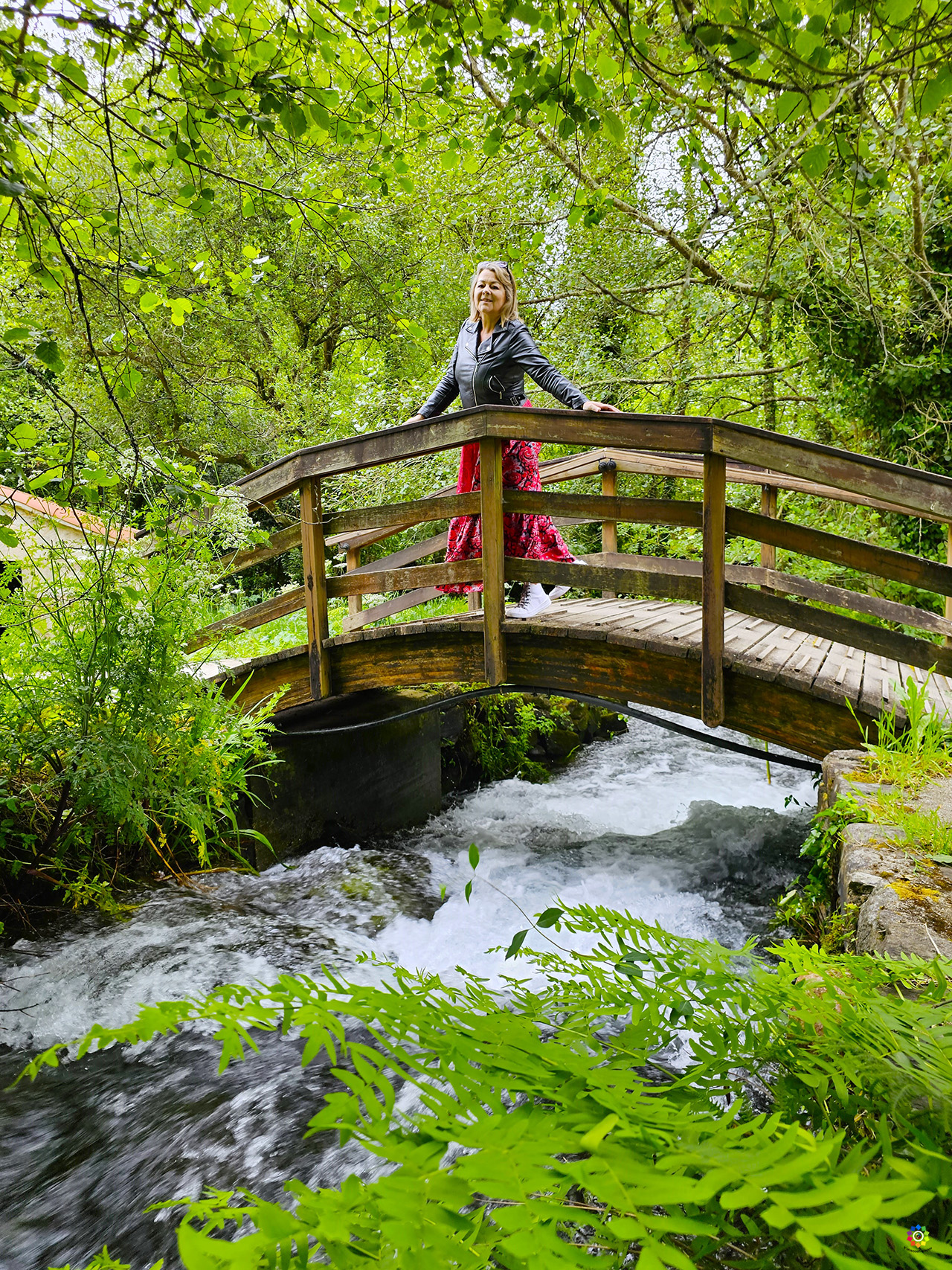 Se trata de un sendero realmente mágico, en pleno casco urbano de Serra de Outes . Podrás aparcar facilmente cerca del acceso y en la calle tendrás varias terrazas para tomar un refrigerio. Como elemento de referencia puedes tomar un hórreo que se ve desde la calle, al lado de la Casa de Cultura de Outes, accede por ahí . Te encontrarás con las letras de EnOutes y un precioso bosque con un antiguo palomar. En esa zona también verás un parque infantil. Si vas a tu izquierda , cruzarás un puente sobre el río y continuarás a la derecha llegando a los molinos y dos puentes de madera. Continúa por ese margen del río hasta el final y vuelve por el otro lado del río. Es un paseo fácil, en llano y de unos 3km de extensión, con rincones y saltos de agua realmente preciosos. Te dejo localización en google maps del punto de acceso.
