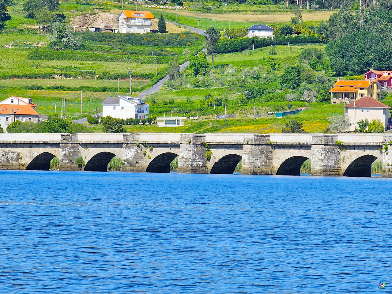 Una vez a bordo, te embarcarás en un viaje a lo largo del río Tambre, rodeado de exuberante vegetación y paisajes idílicos. Durante el trayecto, tendrás la oportunidad de acercarte al Astillero de Ciprián y disfrutar de las vistas desde el mar. En esta zona cuando baja la marea se forman los lombos de arena ( partes que quedan al descubierto en marea baja) lugar de marisqueo famoso por la extracción de berberecho, también pasarás por la Playa de Broña,, Praia Bitureira y continuarás viendo como cambia el entorno a medida que te acercas al estuario del Tambre , después del Porto da Barquiña llegarás al majestuoso Puente de Ponte Nafonso, sobre el río Tambre, una obra arquitectónica impresionante que data del siglo XVIII y que con sus 20 arcos y 270 metros de largo, es el puente más imponente y antiguo del entorno.