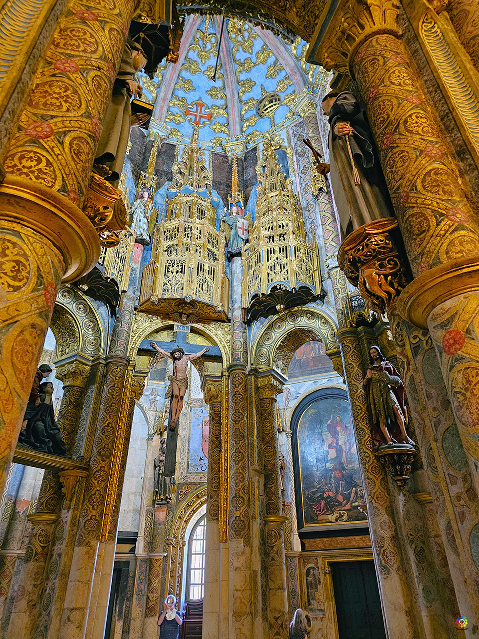 Uno de los espacios más emblemáticos es la Charola dos Templários, el oratorio del siglo XII que refleja el espíritu de la Orden del Temple. Inspirada en el Santo Sepulcro de Jerusalén, esta capilla octogonal era el lugar donde los caballeros templarios realizaban sus oraciones. Su interior deslumbra con pinturas de artistas portugueses y tallas de madera policromada que transportan al visitante al fervor religioso de la época. Créeme que es realmente espectacular!