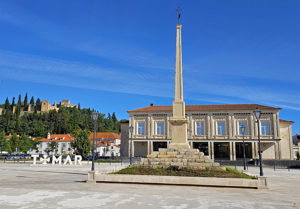 En el centro de la plaza, llama la atención el imponente Padrão Filipino, también conocido como Padrão da Várzea Grande, fue erigido en 1627 para conmemorar la entrega de estos terrenos al pueblo y al Ayuntamiento de Tomar por el rey Felipe III. Esta decisión contrarrestó las pretensiones de la Orden de Cristo, que buscaba apropiarse del terreno para construir el Convento de São Francisco, a pesar de que el rey Manuel I ya había concedido la propiedad al pueblo.