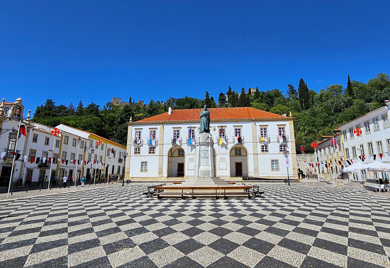 Uno de los elementos más distintivos de la plaza es su suelo, decorado con un mosaico en forma de diamantes en tonos blanco y negro. Cuando pasees por Tomar , seguro que hay más de una calle en la que el suelo te llama la atención.