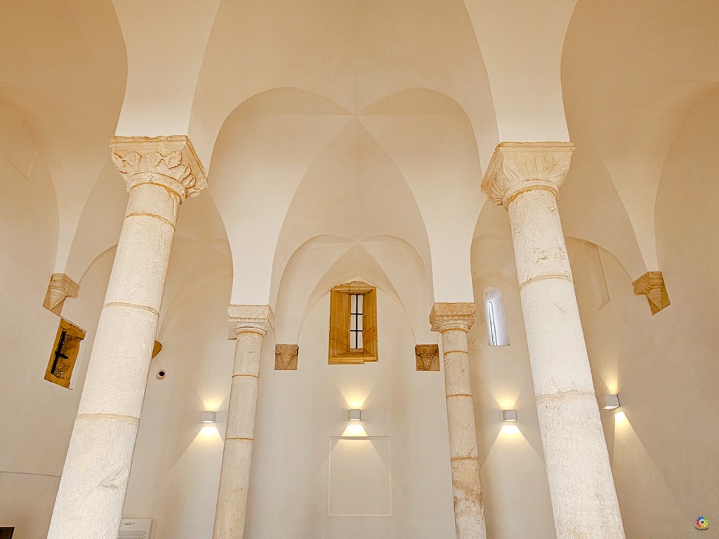Su fachada es discreta, como era común en los templos judíos dentro del mundo cristiano, pero su interior sorprende por su belleza y simbolismo. El techo de la sinagoga está sostenido por cuatro columnas con capiteles decorados con motivos geométricos y vegetales, representando a las Madres de Israel: Sara, Raquel, Rebeca y Lea. Entre estas columnas se extienden 12 arcos, símbolo de las 12 tribus de Israel. Además, en las esquinas superiores de la sala de culto se encuentran dos pequeños orificios conectados a ánforas de arcilla invertidas, que amplifican el sonido de los cantos rituales, creando una atmósfera única.