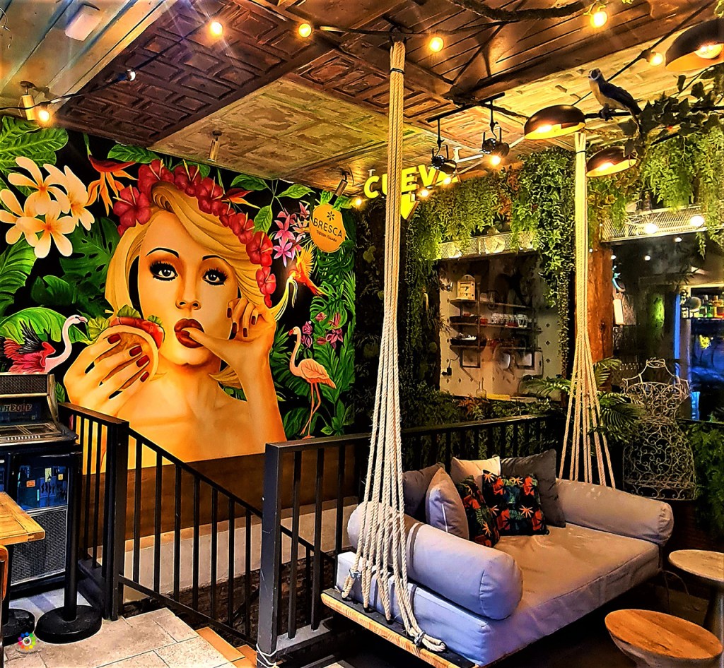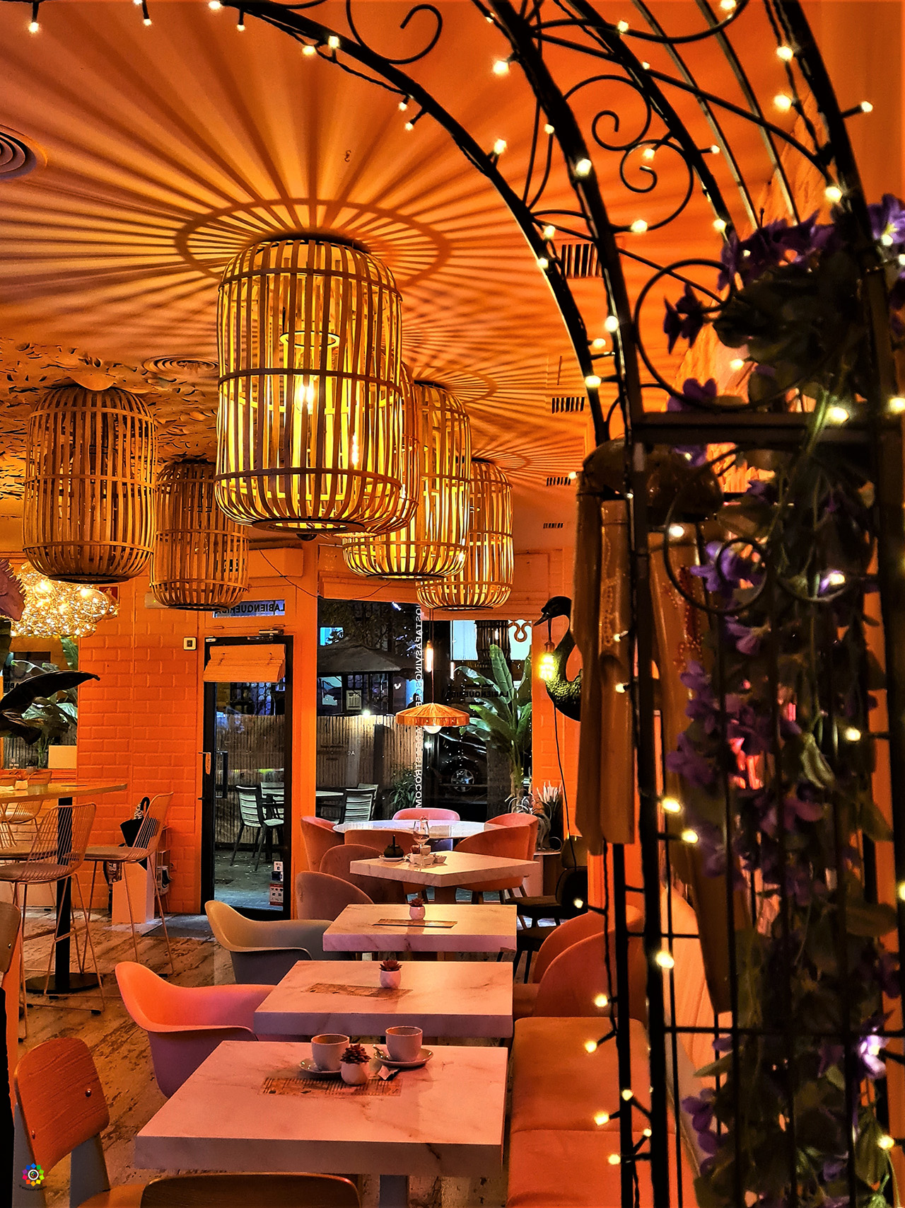 ✔ Su decoración a base de flores y pájaros exóticos cubriendo todo el local es de lo más bonito que hemos visto.