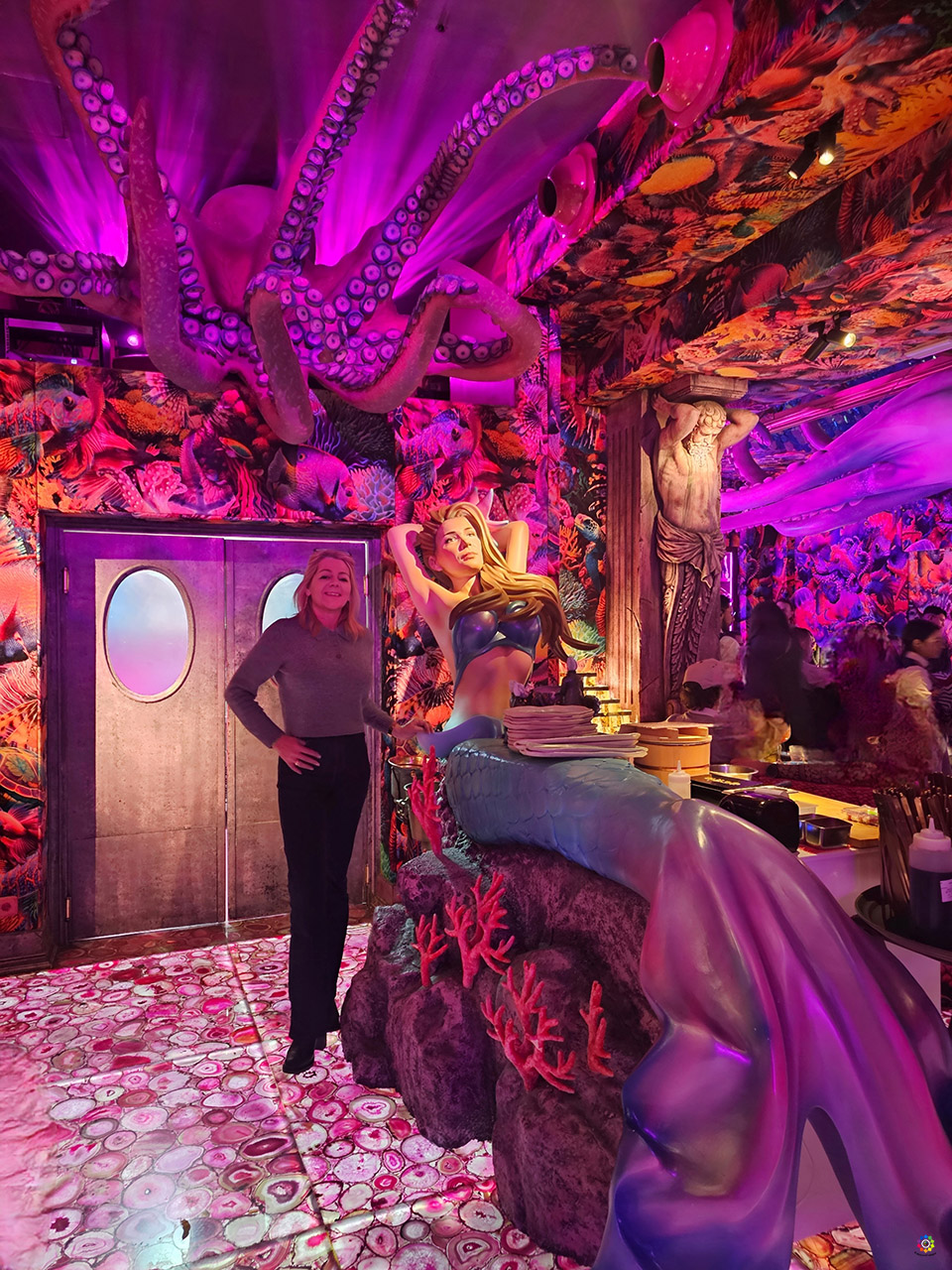 Pero lo que os sorprenderá de verdad es la parte inferior del Restaurante. La escalera a la planta inferior es una auténtica belleza recubierta por un túnel de flores y luces.