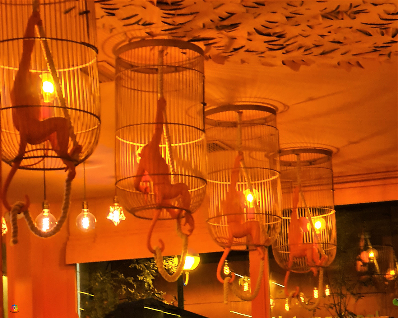 La atención es estupenda y la decoración preciosa, con detalles especiales como las jaulas de monos rosa que decoran el techo de la barra.