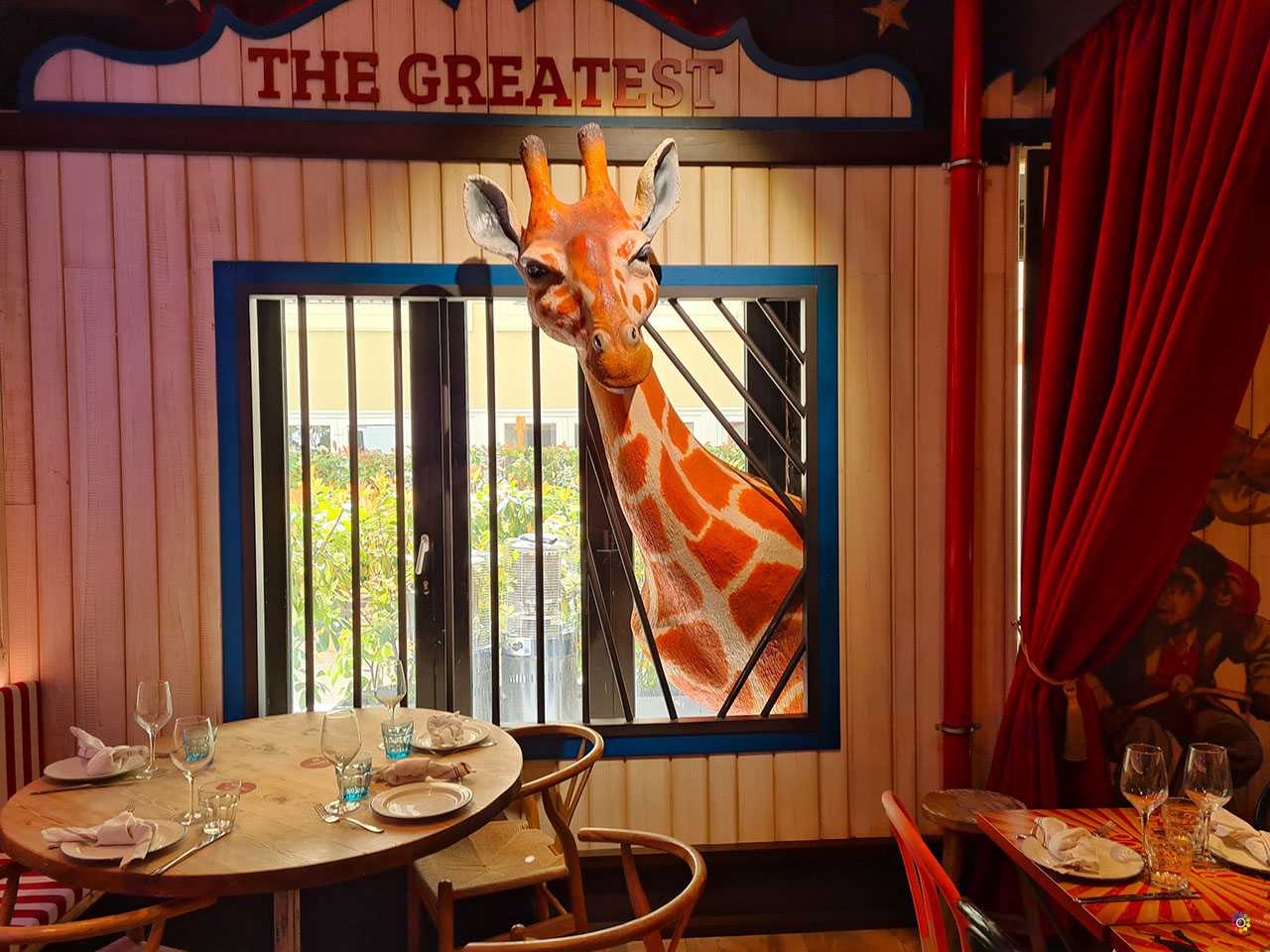 Su espectacular decoración permite vivir una experiencia diferente: comer junto a una jirafa, en la carpa del circo, en un columpio o incluso dentro de una noria.