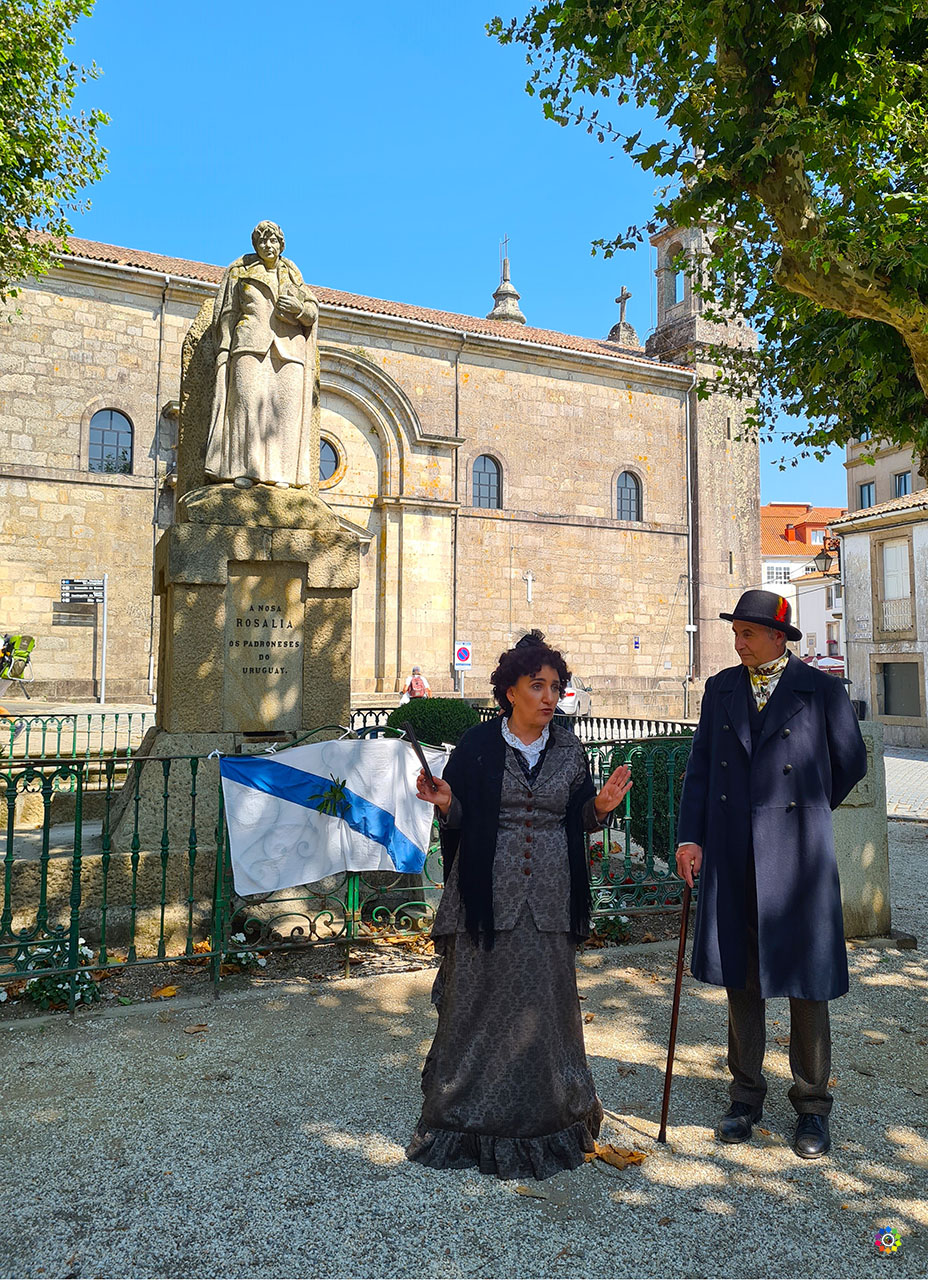 Bajo su arbolada del paseo del Espolón, se encuentran estatuas dedicadas a grandes figuras literarias: Rosalía de Castro, cuyo monumento fue erigido en 1957 . Su monumento, donado por los padroneses residentes en Uruguay, se inauguró con un acto solemne en el que participaron intelectuales de la época, entre ellos Ramón Otero Pedrayo.