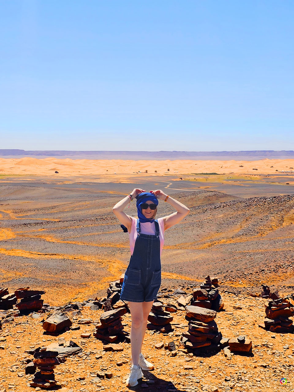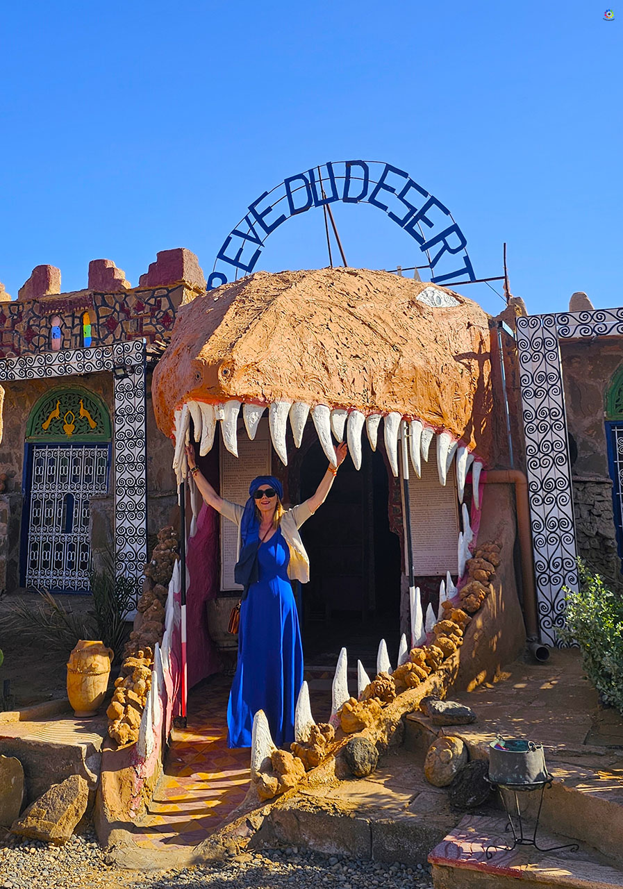 La siguiente parada será en un Bázar Beréber. Aquí te puedes vestir el traje Beréber para sacar una foto. Tienen ropa preciosa con todos los accesorios y un set para fotos muy bonito . También puedes hacerte un tatuaje de henna (está incluido en la excursión junto con el traje beréber para la foto) y, si no lo tienes, te aconsejo comprarte un pañuelo para el desierto. Además de que te quedarán unas fotos preciosas , es super práctico para el sol y sobre todo para la arena si hace viento.