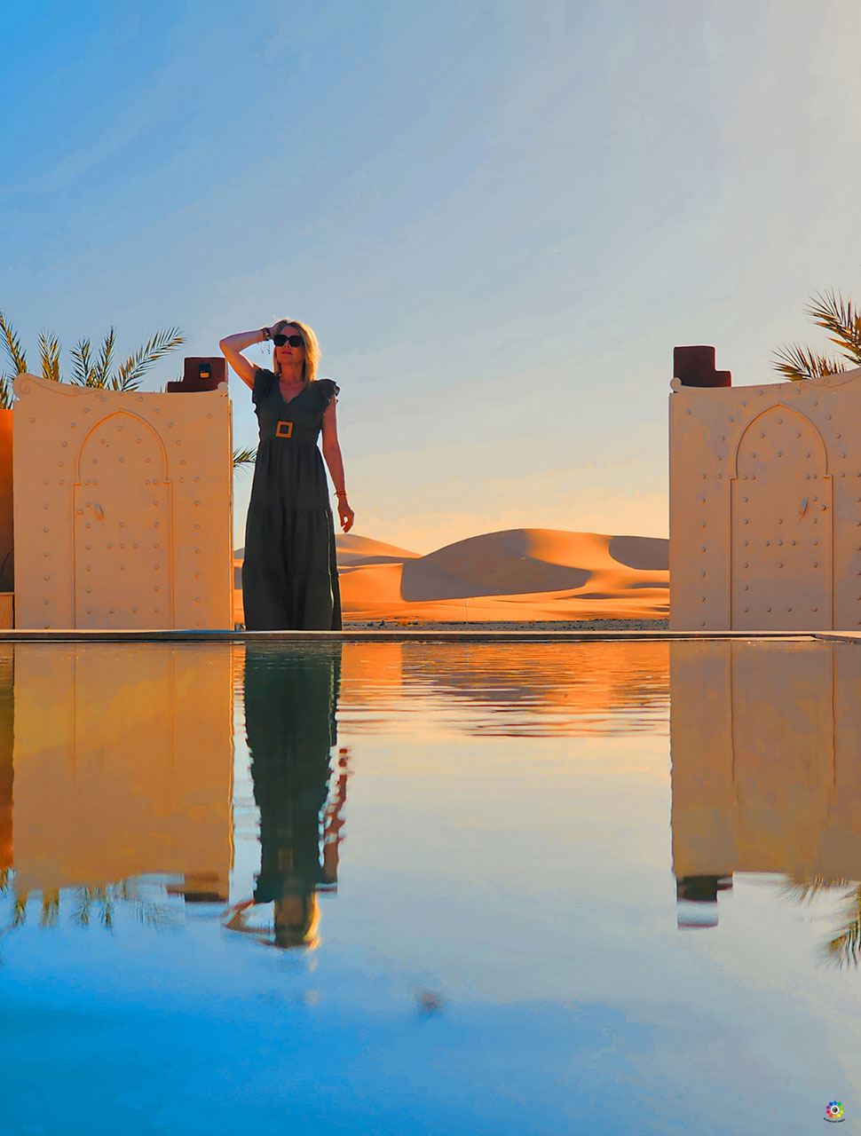 La jornada finaliza en un estupendo hotel en el desierto, cena, piscina infinity con vistas a las dunas de desierto y un buen descanso para el regreso del día siguiente.