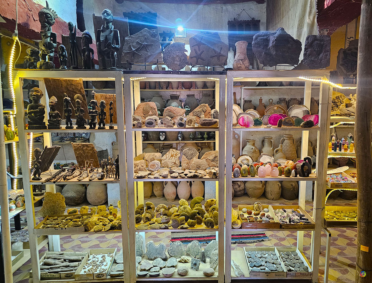 En cuanto a los fósiles, en la zona hay algunas tiendas en las que puedes adquirirlos como souvenir . Nosotros tuvimos la oportunidad de visitar una, que , aunque no estaba incluida en la excursión, nos llamó mucho la atención al pasar por su decoración exterior y fue todo un acierto. Además de comprar algún fósil, el chico fue muy amable y nos mostró la zona de trabajo donde se encargan de prepararlos para la venta y limpiarlos. Era como un auténtico museo en el que tienen piezas impresionantes.