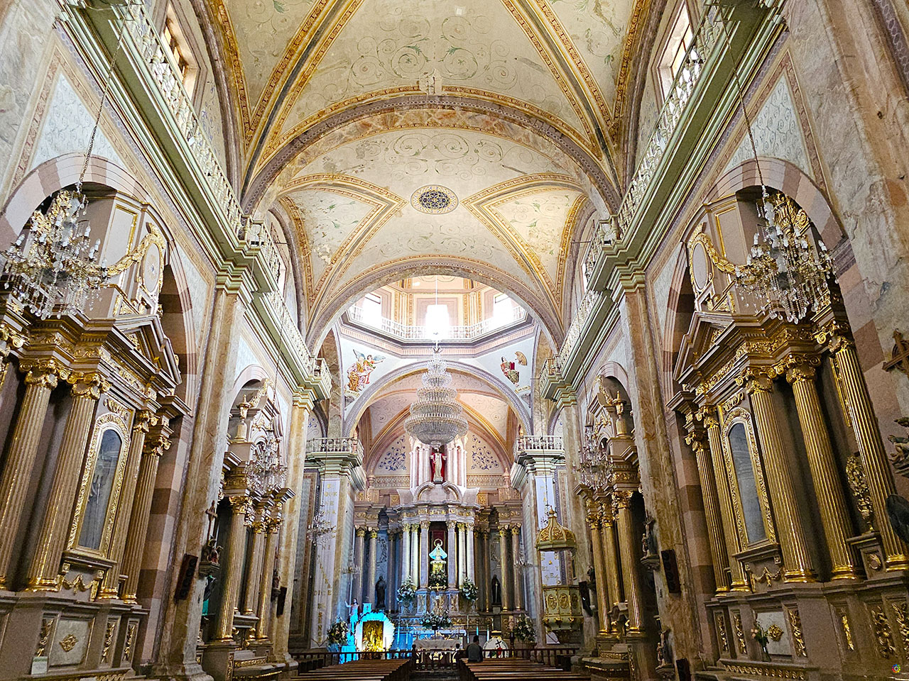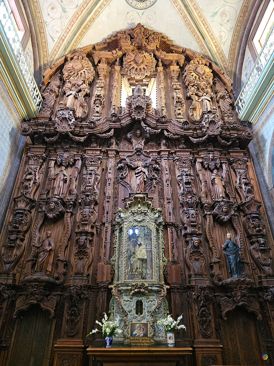 El interior es igualmente impresionante. En el crucero se conservan dos retablos barrocos de estilo estípite, uno dedicado a la Virgen de Guadalupe y otro a San José, este último sin dorar, lo que permite admirar la talla original en madera. Aunque el altar mayor original fue reemplazado a finales del siglo XIX, el conjunto sigue siendo de una belleza sobria y solemne que impone respeto.
