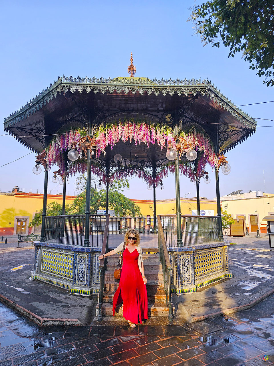 Lo que más me gustó del Jardín del Grande Hidalgo es cómo la historia convive con la vida diaria: familias paseando, niños corriendo alrededor de las fuentes, parejas disfrutando de un helado (¡hay sabores tan locos como tequila, mole o chicharrón!), músicos callejeros tocando rancheras, y turistas curioseando en las tiendas de cerámica de talavera, uno de los productos artesanales más típicos de la ciudad.