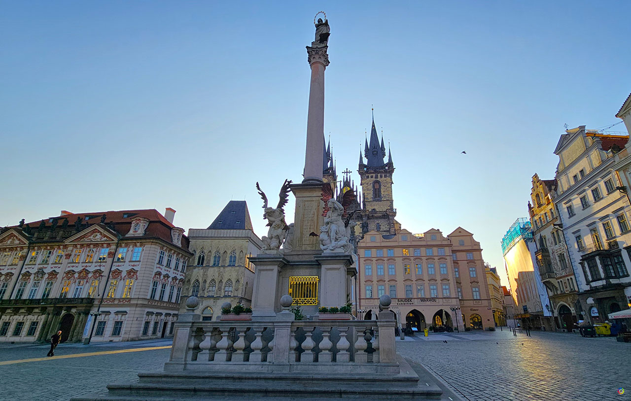 En medio del bullicio de la Plaza de la Ciudad Vieja se alza un monumento que ha regresado para devolver parte de la imagen histórica de este espacio: la Columna Mariana. Erigida originalmente en 1650 para conmemorar la victoria de las tropas católicas sobre los suecos y dedicada a la Virgen María como protectora de la ciudad, fue una de las primeras columnas marianas levantadas en Europa Central.