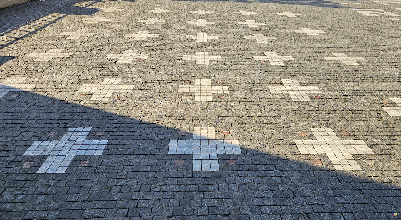 Uno de los detalles más sobrecogedores son las 27 cruces blancas incrustadas en el pavimento. Recuerdan la ejecución, el 21 de junio de 1621, de veintisiete nobles y líderes protestantes tras la derrota en la batalla de la Montaña Blanca, uno de los primeros episodios de la Guerra de los Treinta Años. Doce de sus cabezas fueron expuestas durante casi una década en la torre del puente como aviso a quien osara desafiar a los Habsburgo. Hoy, esas cruces marcan el lugar exacto del ajusticiamiento y cada 21 de junio la tradición dice que sus espíritus recorren la plaza en silencio.