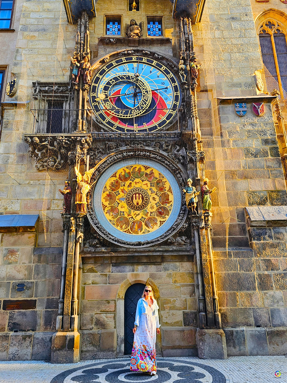 Instalado en 1410, es el reloj astronómico medieval en funcionamiento más antiguo del mundo. Cada hora, entre las 9:00 y las 23:00, se activa el desfile de los Doce Apóstoles acompañado de figuras alegóricas como la Muerte, la Avaricia o la Vanidad. Bajo el reloj puedes ver también un calendario circular con los meses del año y signos del zodíaco.