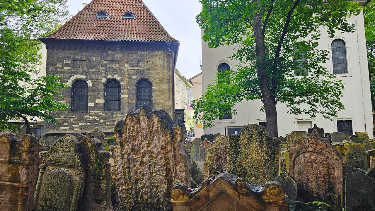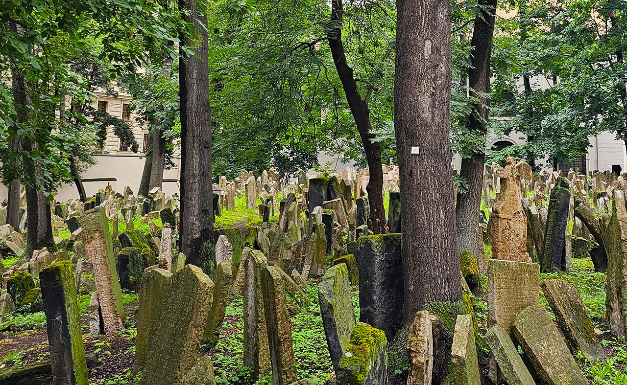 A unos pasos de la Old-New, el cementerio ofrece una experiencia que va más allá de lo visual: recorre los senderos estrechos entre lápidas hacinadas, superpuestas, algunas inclinadas, otras partidas. El espacio era limitado, y la gente siguió enterrándose encima o junto a cuerpos anteriores , en contacto con la tierra, hasta que ya no cupo más. Tiene 12 capas de enterramientos apiladas una sobre otra, lo que significa que hay alrededor de 100.000 cuerpos enterrados, ya que la tradición judía no permite la exhumación de los muertos.. Se ven inscripciones antiguas, nombres de rabinos, familias, fechas que recuerdan épocas distintas, idiomas distintos.es uno de los rincones más sobrecogedores y llenos de historia del barrio judío. Sus estrechos senderos, cubiertos por miles de lápidas torcidas y desgastadas por el tiempo, guardan silenciosos relatos de más de tres siglos de vida comunitaria. La tumba más antigua que se conserva es la del rabino Avigdor Kara, cuya lápida data de 1439, mientras que la más reciente pertenece a Moses Beck, enterrado en 1787. Entre ambas fechas, se levantaron unas 12.000 lápidas bajo las cuales se calcula que descansan cerca de 100.000 personas.