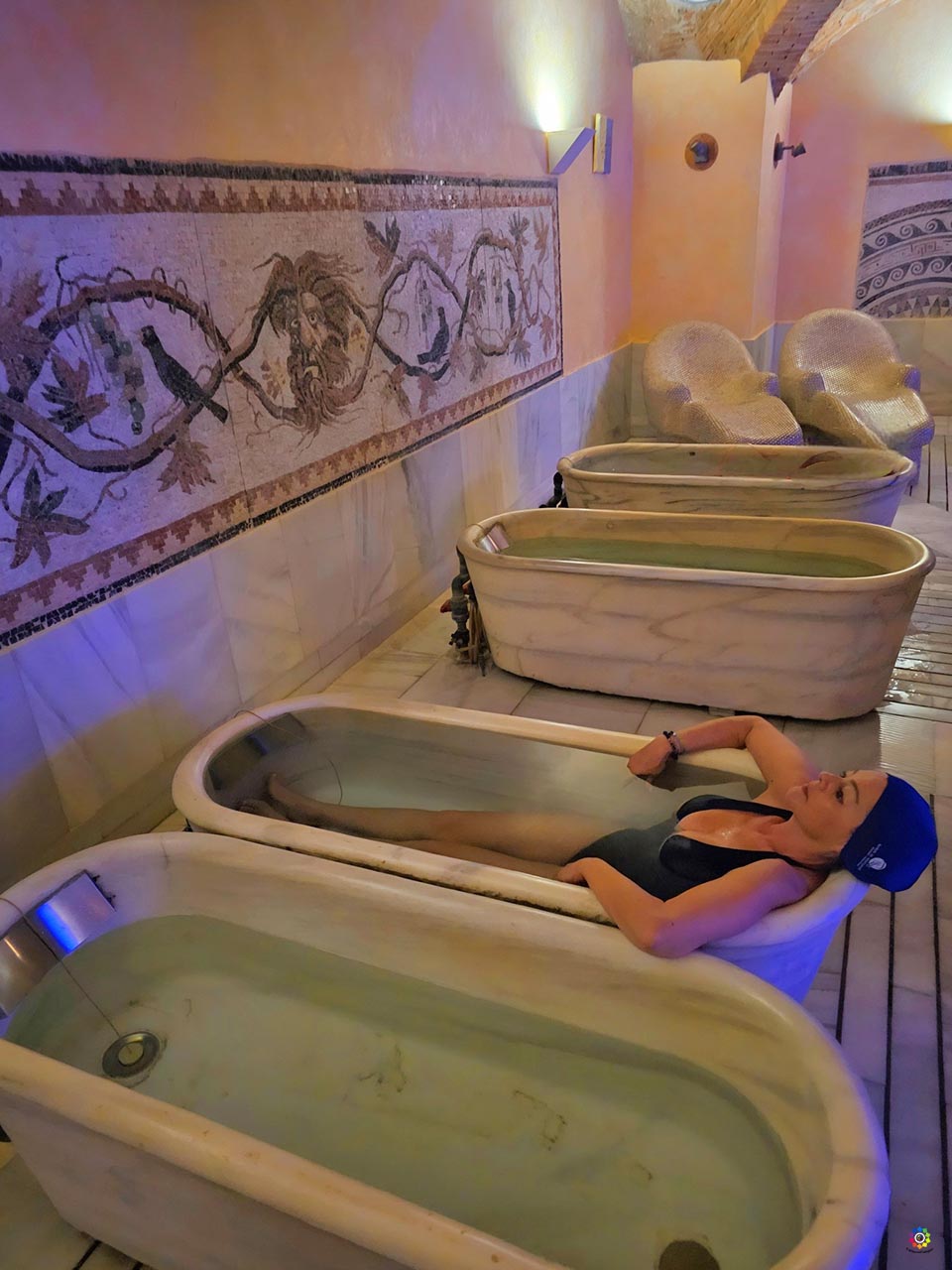 Termas romanas originales integradas en modernas instalaciones.