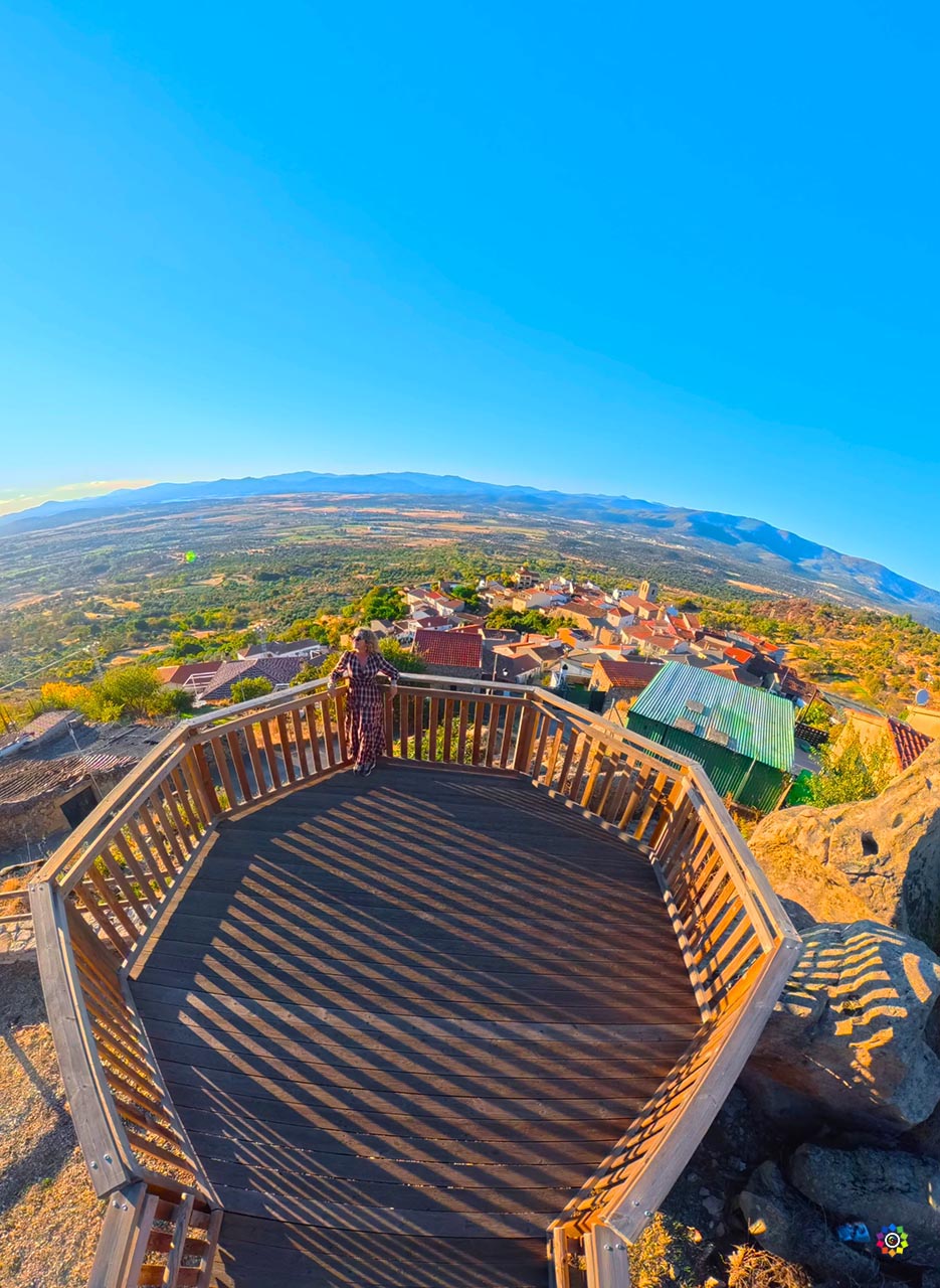 Segura de Toro es uno de esos pueblos pequeños que conquistan sin hacer ruido. Enclavado en lo alto del Valle del Ambroz, este rincón cacereño combina naturaleza, tradición y una historia que se siente en cada piedra. Su emblema es el imponente verraco vetón, testigo silencioso de los antiguos pueblos prerromanos que habitaron la zona. Pasear por sus calles estrechas, rodeadas de casas de piedra y balcones floridos, es como viajar a otra época. Y no te puedes perder el mirador, las vistas del valle son un regalo, especialmente al atardecer. El Mirador El Canchal de la Cigüeña es uno de esos rincones que te obligan a parar y respirar hondo. Se asoma sobre Segura de Toro como un balcón privilegiado, suspendido entre castaños, montañas y el silencio del Valle del Ambroz. La pasarela de madera que conduce hasta él ya anticipa la magia: caminando hacia el borde, el paisaje se va abriendo poco a poco hasta regalar una panorámica inmensa del valle y del embalse al fondo. Es un mirador sencillo, integrado en la naturaleza que parece volar sobre el pueblo, perfecto para disfrutar del atardecer, hacer fotos preciosas y dejarse sorprender por la calma de este pequeño pueblo con alma vetona. Un imprescindible en tu visita a Segura de Toro.