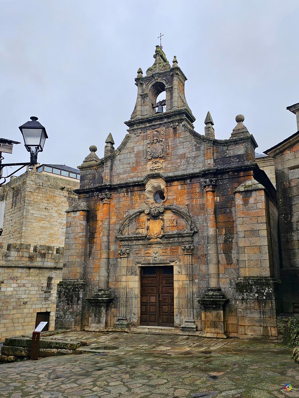 Al lado de la Iglesia de Santa María del Azogue verás la Ermita de San Cayetano, suele pasar desapercibida a primera vista, pero en cuanto te acercas descubres que es uno de los rincones con más encanto de Puebla de Sanabria. Situada entre la iglesia de Santa María del Azogue y el castillo, parece colocada ahí a propósito, como un pequeño puente entre la solemnidad románica del templo principal y la fortaleza señorial que domina la villa. Su fachada barroca, de finales del siglo XVII y principios del XVIII, destaca por la sillería de granito y por una composición sobria, casi neoclásica, que llama la atención sin estridencias. Sobre la puerta, un frontón partido cobija el relieve de la cruz de Cristo con el sudario y lo remata un pequeño óculo lobulado, mientras que en el segundo cuerpo aparece el escudo familiar del fundador, Lucas García de Osorio.
