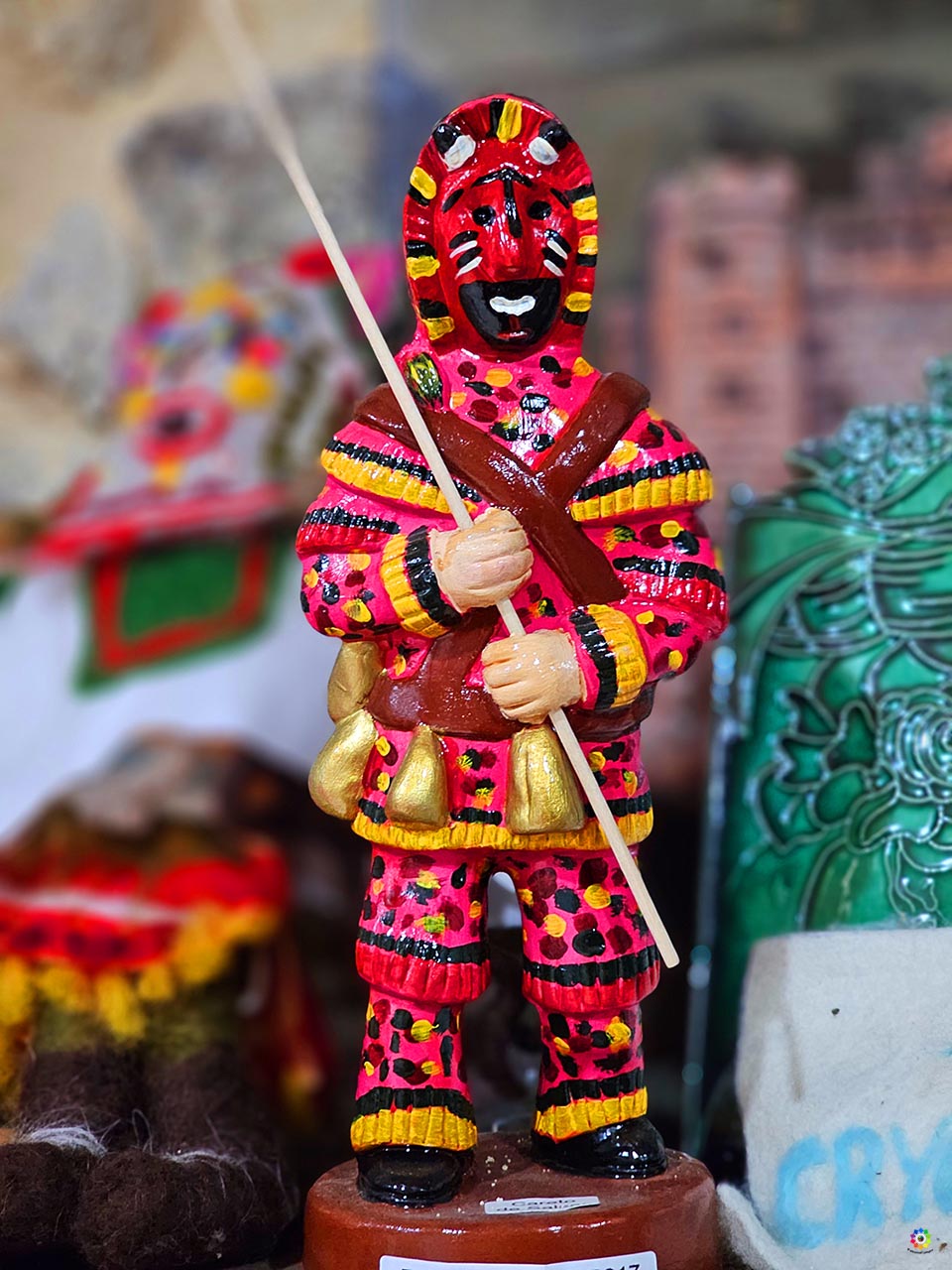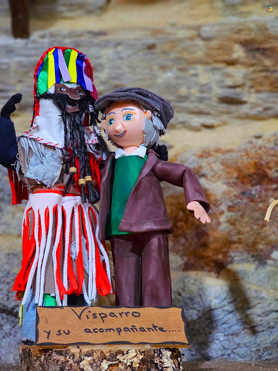 Uno de los elementos más vistosos son las talanqueiras, vecinos disfrazados de toros o vacas bajo grandes sábanas blancas o rojas decoradas con telas de colores. Avanzan montados sobre un palo rematado en una cola de pelo, listos para “torear” a los visparros. Y son precisamente los visparros quienes ponen el ruido: cubiertos con máscaras altas en forma de capirote y túnicas llenas de tiras de colores, avanzan con cencerros, carracas y palos, creando un ambiente tan caótico como festivo.