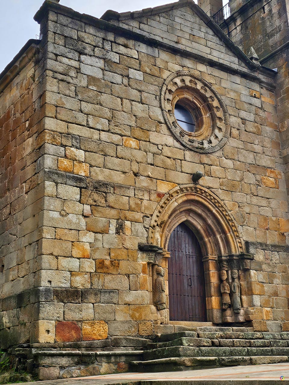 La iglesia de Santa María del Azogue es uno de esos lugares que te sorprenden incluso antes de cruzar la puerta. Asomada en la parte más alta de Puebla de Sanabria, junto al castillo, parece custodiar el pueblo desde hace siglos. Su origen románico, del siglo XII, se aprecia en los muros de la nave y en las portadas, donde la piedra cuenta historias que el tiempo no ha borrado. La más llamativa es la portada principal, decorada con capiteles románicos que muestran motivos vegetales y escenas bíblicas como Adán y Eva tentados por la serpiente. En los fustes, las figuras humanas vestidas al estilo medieval te recuerdan que esta iglesia ha visto pasar generaciones enteras.