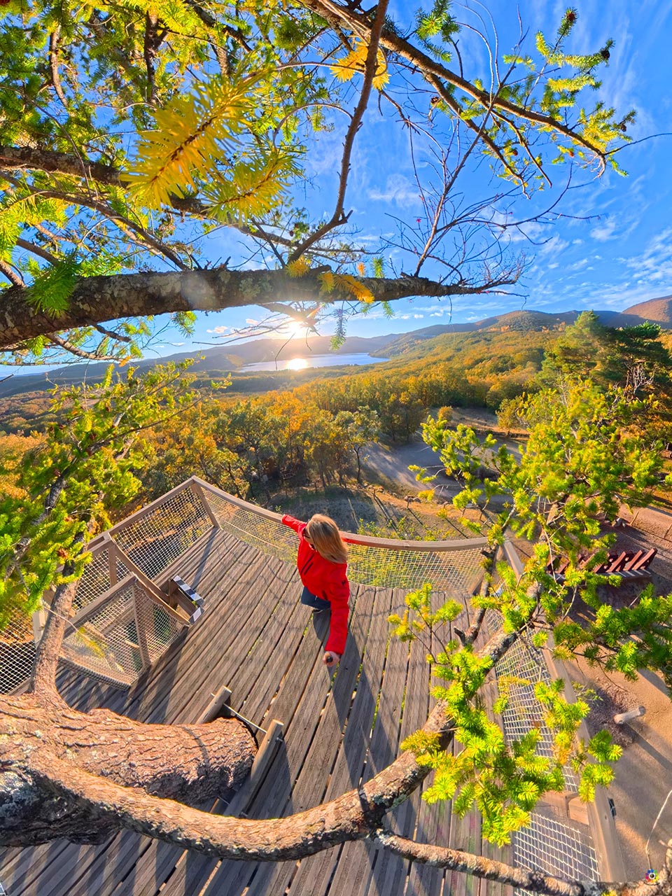 El edificio fue en su día la casona principal de la finca, un lugar por el que llegó a pasar incluso Alfonso XIII. Tras su rehabilitación, mantiene la arquitectura tradicional sanabresa, con piedra, pizarra y un estilo cálido que encaja perfectamente con el paisaje. Hoy ofrece 11 habitaciones muy cómodas, algunas comunicadas entre sí, ideales para familias o grupos. La sensación de desconexión empieza en cuanto uno llega: el entorno es tranquilo, el aire huele a montaña y las vistas al lago crean un marco perfecto para cualquier escapada. No puedes dejar de subir al mirador del árbol, las vistas desde arriba son un auténtico espectáculo.