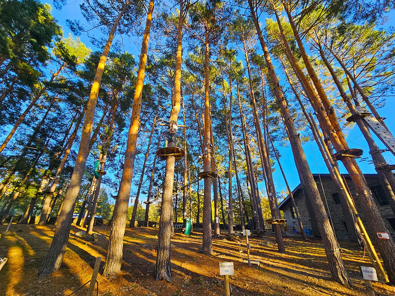 Pero Villa Lucerna no es solo un lugar donde dormir bien: es un punto de encuentro para quienes buscan aventura al aire libre. En el bosque que rodea la finca se encuentra su parque de tirolinas, que presume de tener la tirolina más larga del Lago de Sanabria, con 40 metros de recorrido. Para quienes prefieren algo más suave hay cuatro circuitos diferentes, adaptados a todas las edades y niveles. Todo el material está homologado y la actividad se realiza siempre con monitores especializados. Los niños, además, pueden disfrutar del miniclub, donde un adulto responsable les propone juegos y actividades según su edad.
