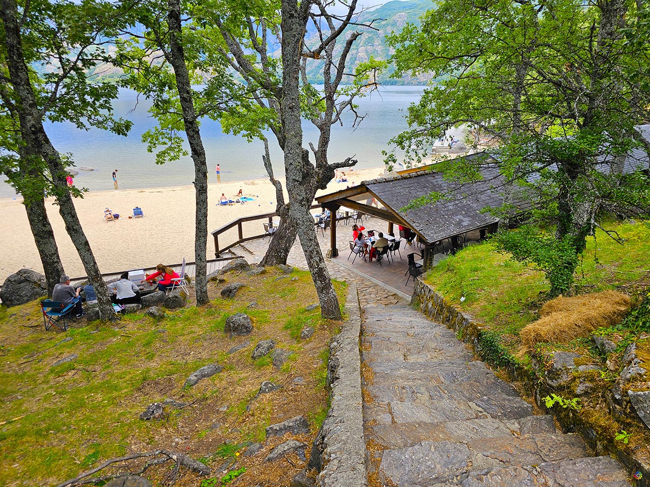 Es la playa más amplia y completa del Lago de Sanabria, motivo por el que suele llenar su aparcamiento antes del mediodía. Dispone de chiringuito, parque infantil, merendero y un largo malecón, además de ser la más accesible gracias a sus rampas de madera y zonas reservadas para personas con discapacidad. Una opción muy familiar y con todos los servicios.
