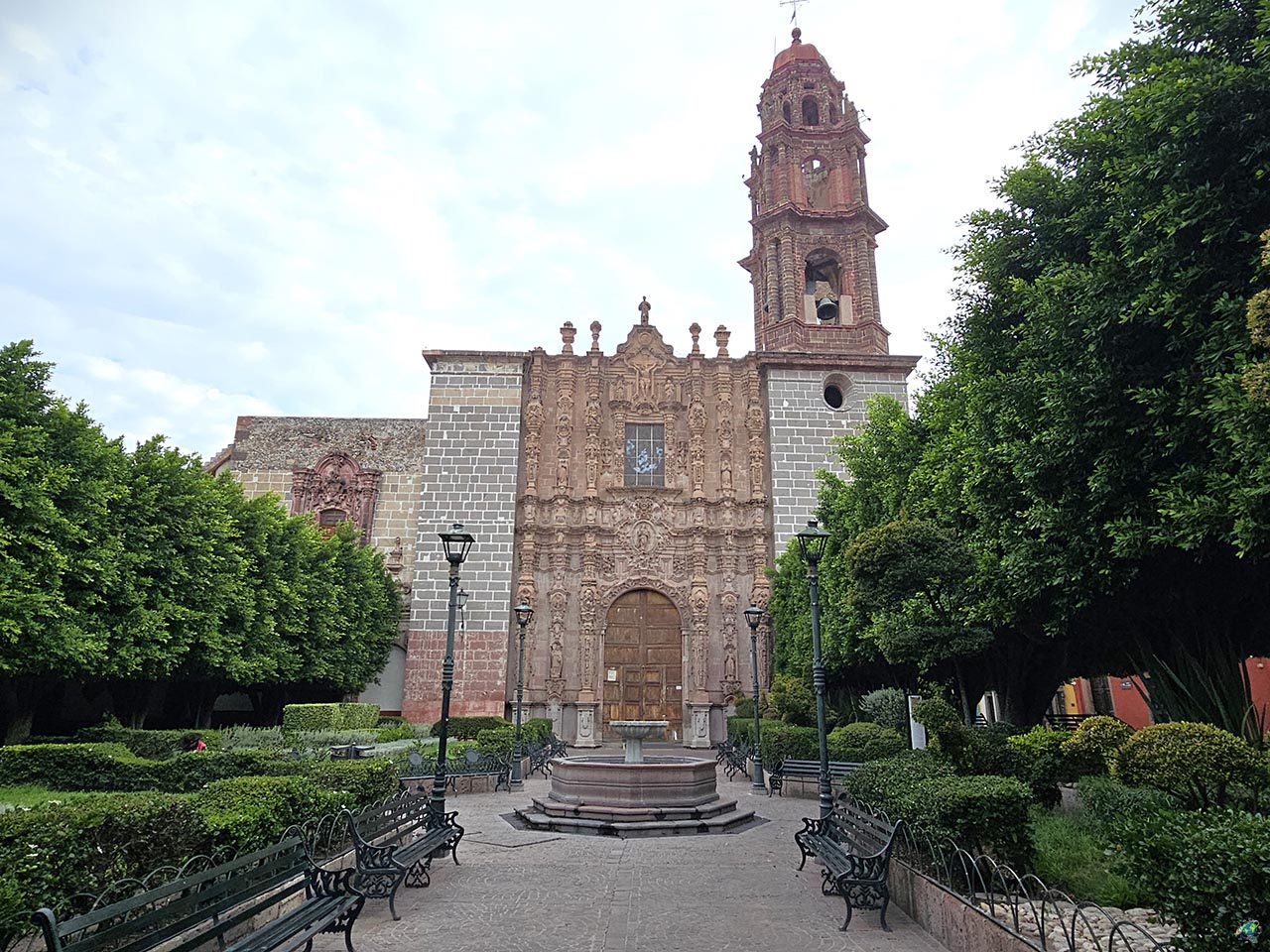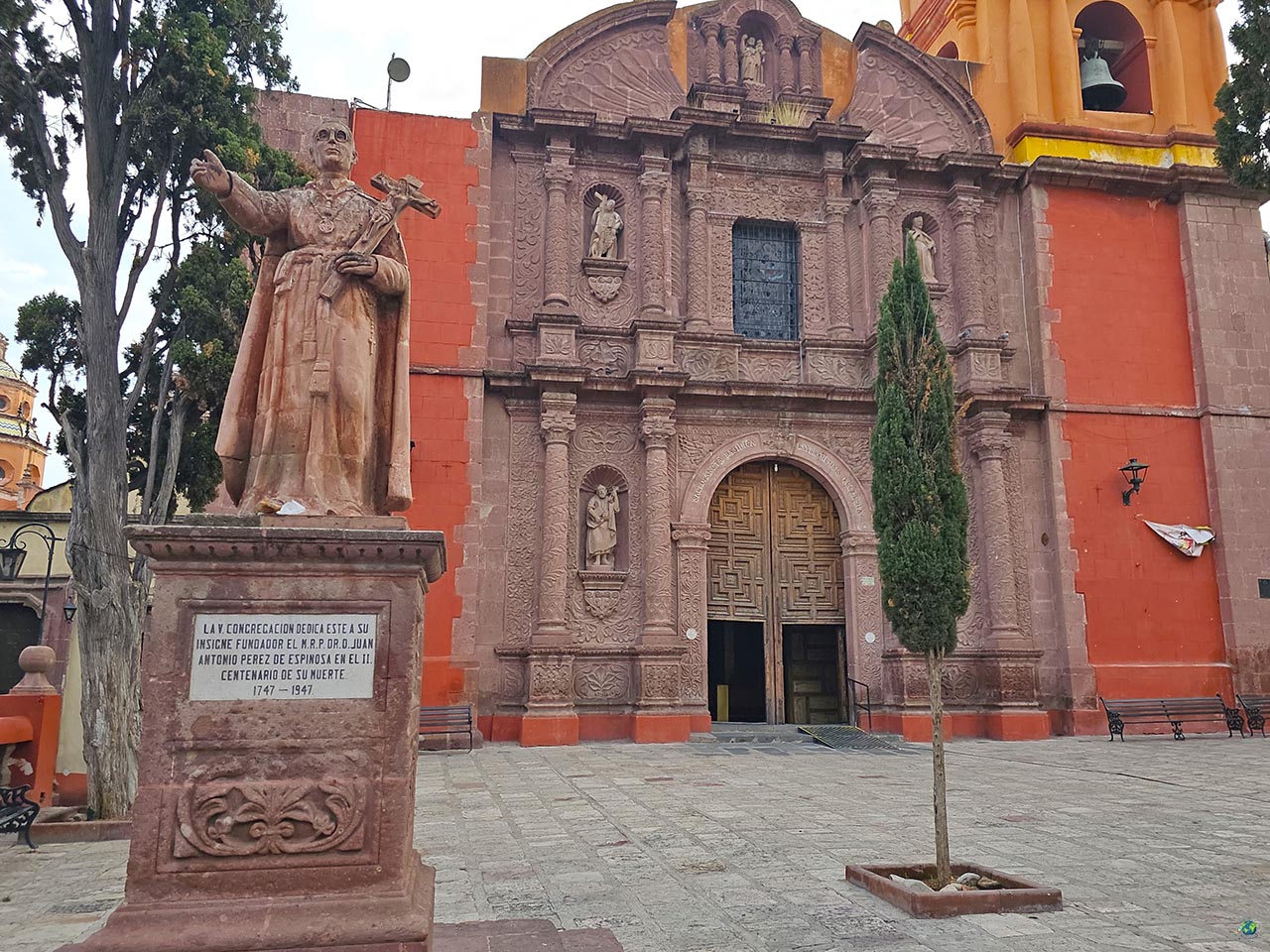 Construido por la orden franciscana, su fachada es considerada la más bella de la ciudad y uno de los mejores ejemplos del estilo churrigueresco en la región. El detallado trabajo en cantera es simplemente espectacular. En ella se distinguen distintas figuras religiosas, con San Francisco en la parte superior, acompañado por San Juan, la Inmaculada Concepción, la Virgen de los Dolores y un impresionante Cristo crucificado. Es de esas fachadas ante las que te detienes varios minutos mirando cada detalle.