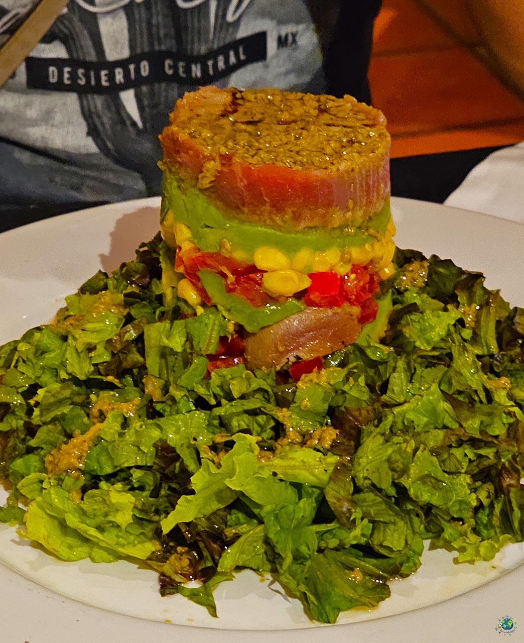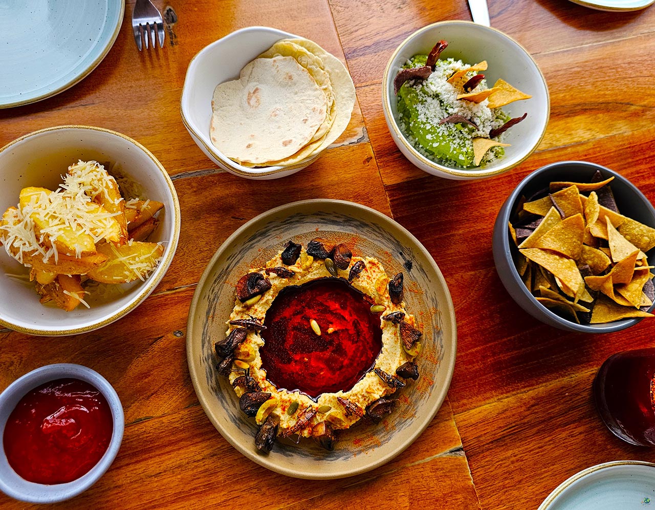 La propuesta gastronómica combina cocina mexicana contemporánea con toques internacionales, cuidando tanto la presentación como el sabor. Entre los platos más recomendables destacan opciones para compartir, cortes bien ejecutados y propuestas frescas que encajan muy bien con el clima de la ciudad. La coctelería también tiene protagonismo, con combinaciones creativas y clásicos reinventados que acompañan perfectamente la experiencia.