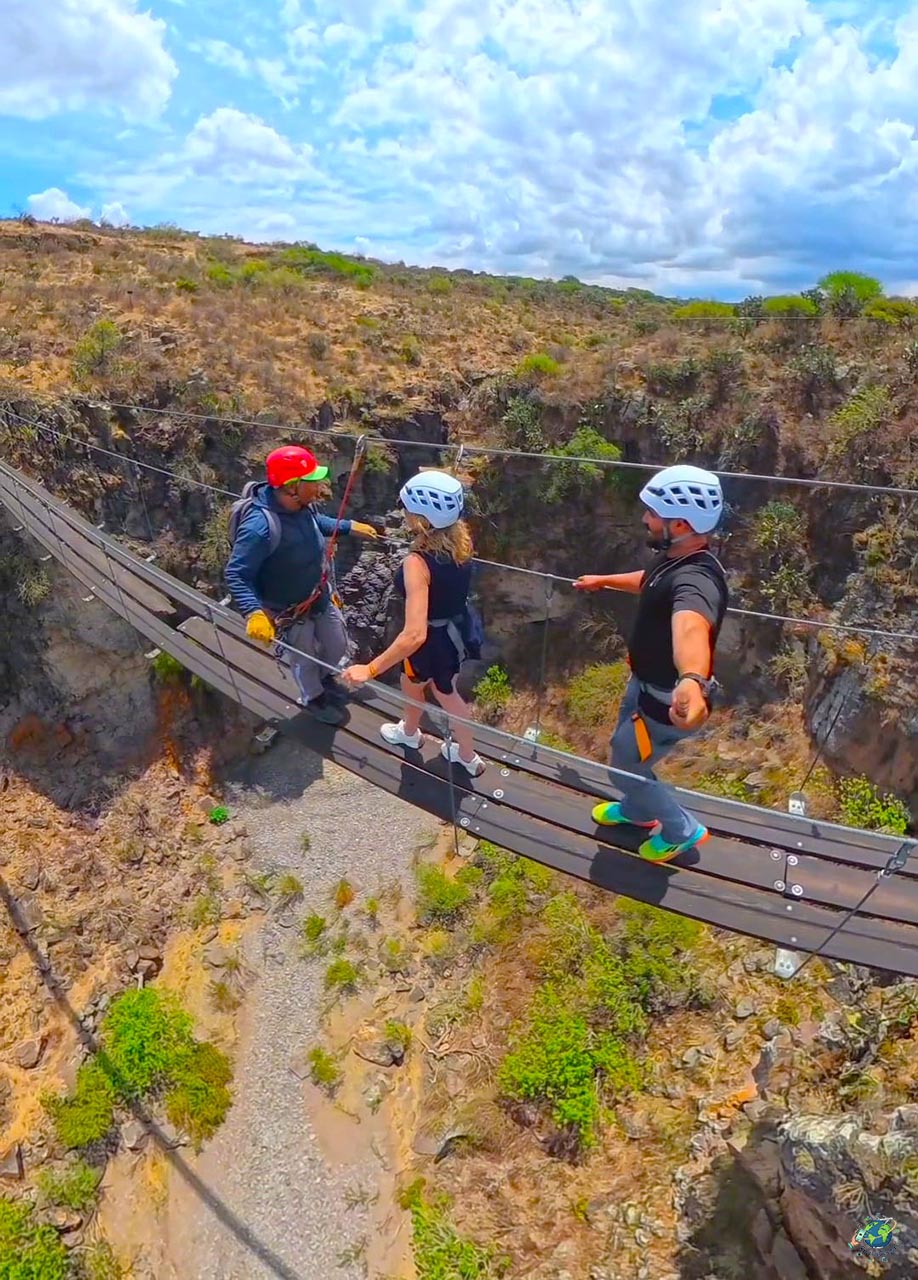 La actividad estrella son sus siete tirolesas que cruzan el Cañón del Águila Cola Roja a unos 150 metros de altura. La sensación de volar sobre el paisaje es tan intensa como emocionante. A esto se suma un puente colgante de madera que pone a prueba el equilibrio y los nervios, ideal para quienes disfrutan superando límites.