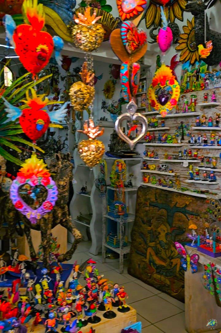 Aquí encontrarás algunas de las artesanías más representativas de la región. Destacan las estrellas de latón y piezas repujadas, espejos y lámparas decorativas, textiles bordados a mano, tapetes de lana elaborados en telar de pedal, cerámica mayólica, alfarería tradicional y una amplia variedad de joyería en plata. Las velas artesanales, en múltiples formas y colores, son otra de las especialidades más buscadas.