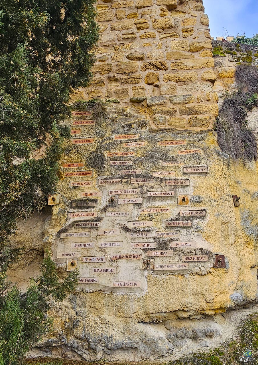 Muy cerca, el llamado “muro de la memoria” recoge nombres de alcalaínos ilustres en pequeñas piezas de cerámica. Es un detalle sencillo, pero que aporta cercanía y conecta con la historia más reciente del municipio.