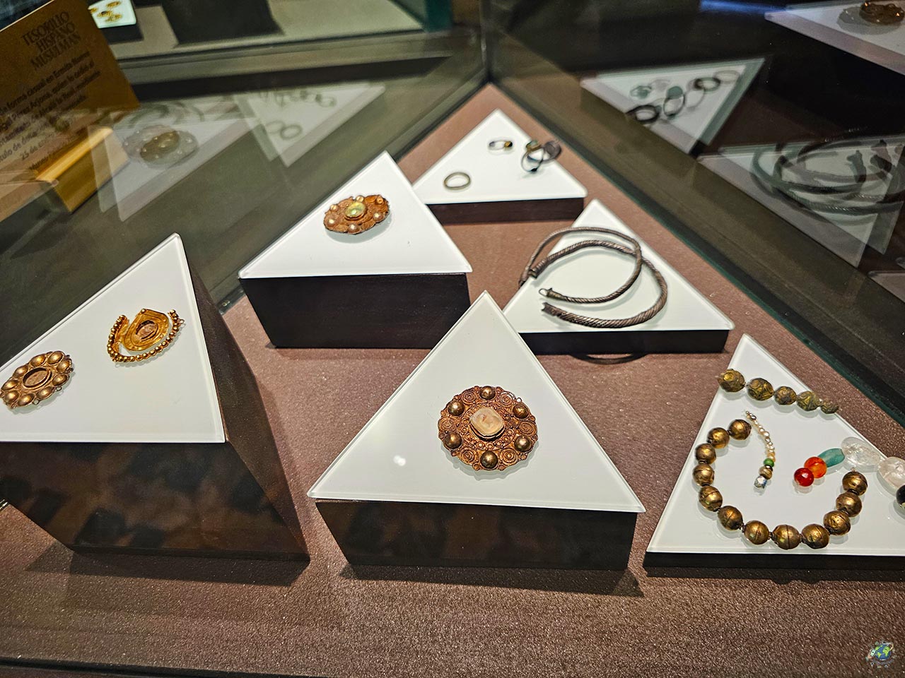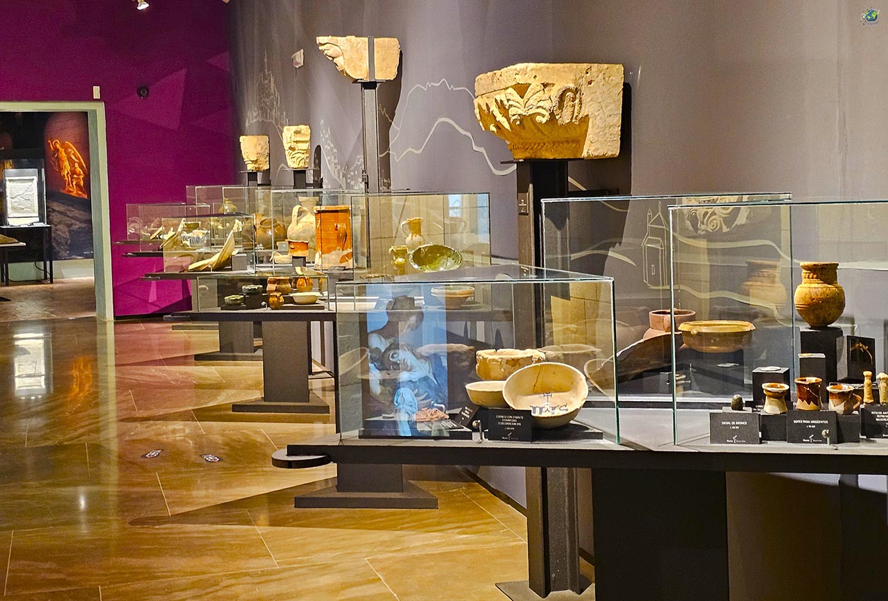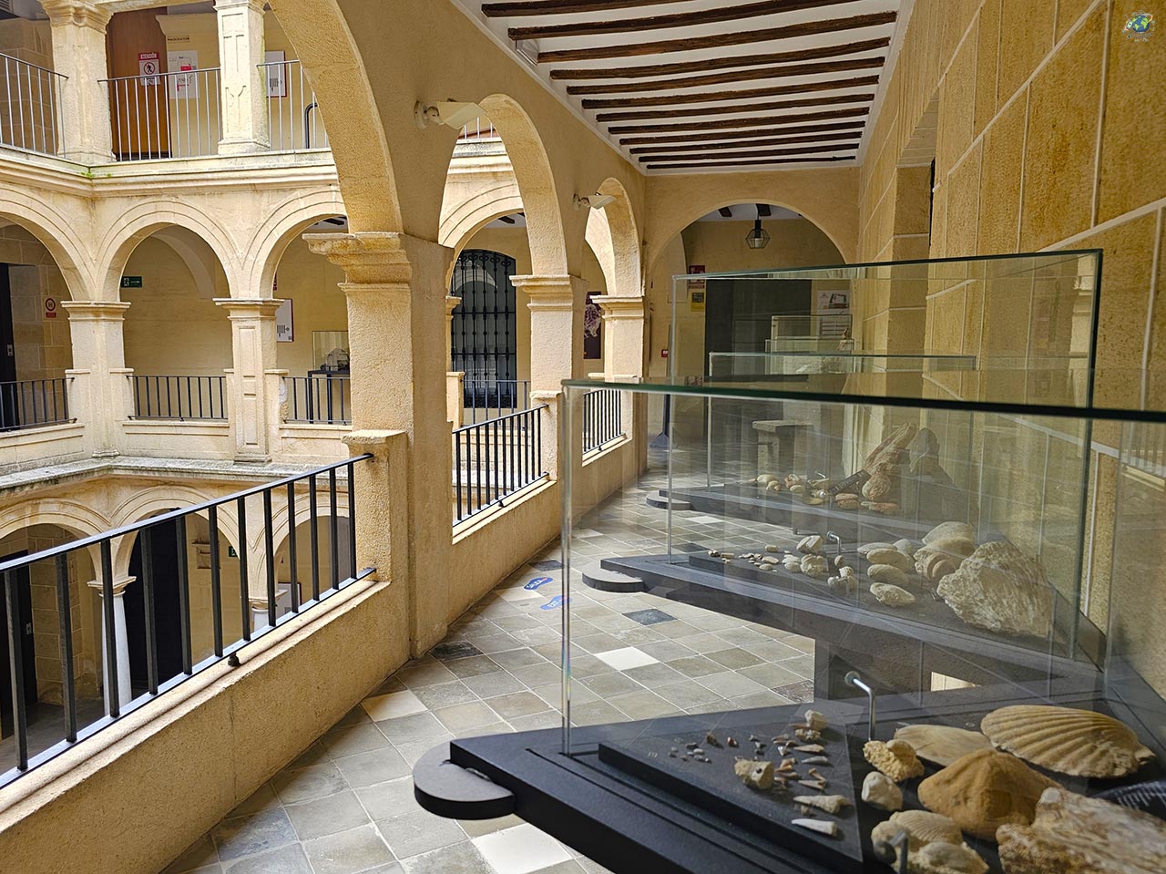 Uno de los espacios que más sorprenden es el patio interior. Con su estructura de galerías y columnas, funciona como el corazón del edificio y es uno de esos rincones donde apetece detenerse un momento antes de continuar. A lo largo del recorrido también aparecen salas dedicadas a la geología, los fósiles o la vida cotidiana en otras épocas, lo que hace que la visita sea bastante completa y variada. Entre sus piezas más destacadas se encuentra el conocido tesorillo califal, fechado entre los siglos X y XI, que refleja la importancia histórica de este territorio durante la época andalusí