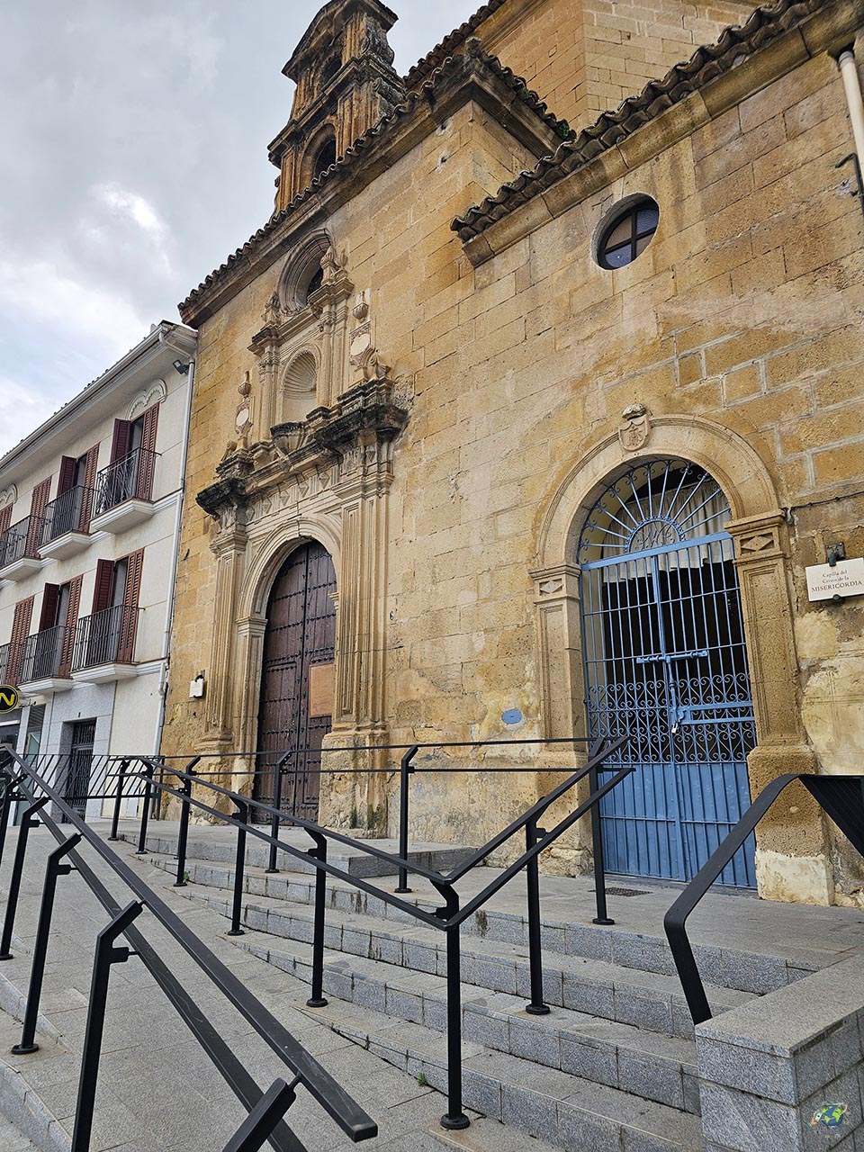 Uno de los aspectos más curiosos es su forma. A diferencia de otras iglesias más tradicionales, su planta es elíptica, algo poco habitual, a partir de la cual se abren pequeños espacios que corresponden a la cabecera, los pies y las capillas laterales. La fachada, por su parte, combina distintos elementos decorativos. En la parte inferior destaca la portada con arco de medio punto, mientras que en niveles superiores aparecen hornacinas, columnas y una espadaña que remata el conjunto con un aire claramente barroco. En el interior, el espacio es más sobrio, pero guarda algunas piezas de interés, como la imagen de la Virgen de la Aurora, muy vinculada a la tradición de la ciudad. Además, junto a la iglesia se encuentra la Capilla del Cristo de la Misericordia, que originalmente formaba parte del antiguo convento de los Capuchinos. Aunque a la Capilla solo se puede acceder en horario de misas, cuenta con una puerta de rejas a través de la cual se puede ver perfectamente la imagen del Cristo de la Misericordia.
