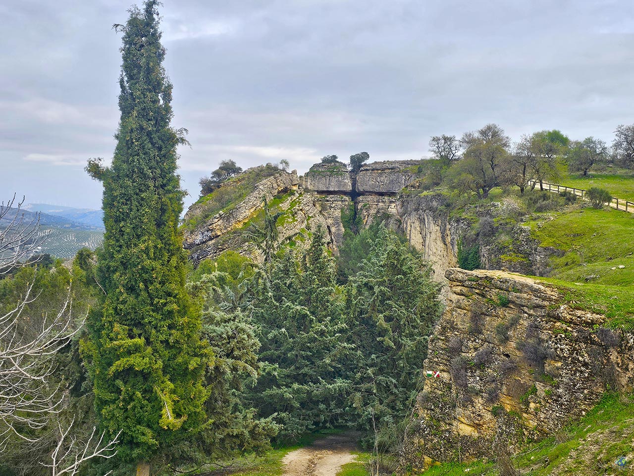 En la base del Cerro de las Cruces se encuentra la conocida Caseta del Agua, también llamada El Nacimiento o Venero de San Marcos. Este pequeño edificio del siglo XVII protegía uno de los principales manantiales que abastecieron a la ciudad durante siglos. Desde aquí partía el agua hacia fuentes y pilares repartidos por Alcalá la Real. Muy cerca comienza la Ruta de los Zumaques, un sendero perfecto para quienes quieren combinar naturaleza y vistas. A lo largo del recorrido, el paisaje va cambiando entre vegetación mediterránea, cortados rocosos y panorámicas constantes de la fortaleza. Y, desde el mismo punto de partida, puedes recorrer el Parque de las Esculturas, un espacio al aire libre donde se integran esculturas contemporáneas con vistas hacia la ciudad. Las esculturas han sido talladas en la roca por un vecino de la ciudad, Vicente. Además de la belleza de las esculturas y el entorno, acabarás llegando a un mirador espectacular que te dejará sin palabaras.