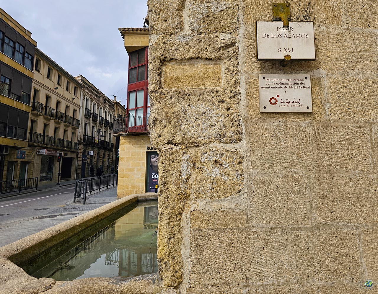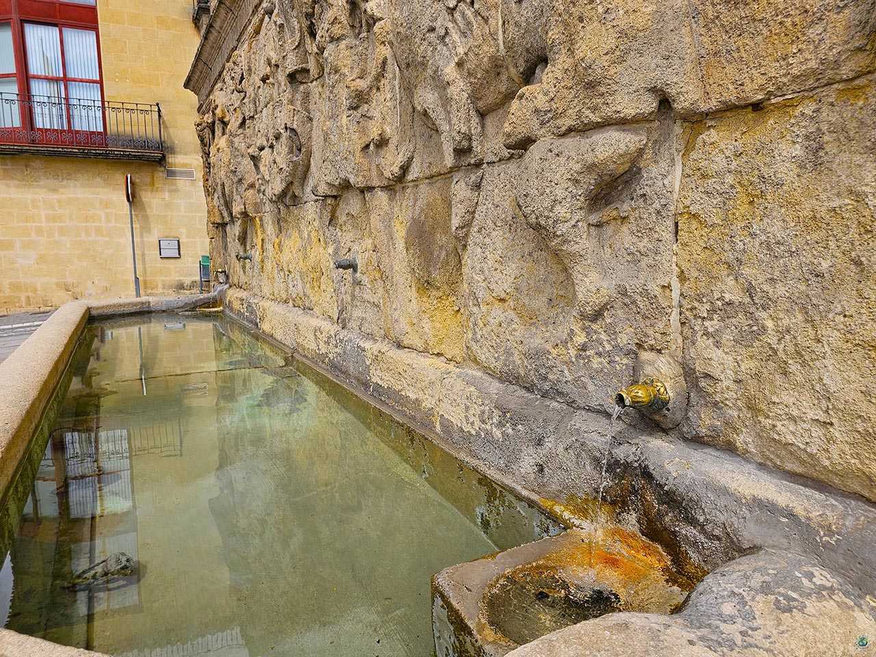 Se trata de una fuente renacentista construida en 1552, que durante siglos no fue solo un elemento decorativo, sino una pieza clave en el abastecimiento de agua de Alcalá la Real. Hasta aquí llegaban las aguas procedentes de un manantial conocido como “la Mina”, situado en las inmediaciones de Los Llanos. Más allá de su función, lo que realmente llama la atención es su diseño. El frontis, realizado en piedra, está cuidadosamente trabajado y presenta un gran relieve donde dos figuras sostienen el escudo de la ciudad. A ambos lados aparecen dos grifos, criaturas mitológicas con cuerpo de león y cabeza de águila, tradicionalmente asociadas a la protección y la vigilancia. No es un detalle casual. Alcalá la Real fue durante más de un siglo una ciudad clave en la frontera del Reino de Castilla, y ese papel defensivo quedó reflejado incluso en su simbología. De hecho, en el propio escudo aparece la inscripción que define perfectamente su importancia histórica: “Llave, guarda y defendimiento de los reinos de Castilla”, un título concedido por los Reyes Católicos. El pilar, atribuido a maestros del Renacimiento andaluz vinculados a figuras como Jacobo Florentino, es un buen ejemplo de cómo incluso las infraestructuras más funcionales se concebían también como elementos representativos.