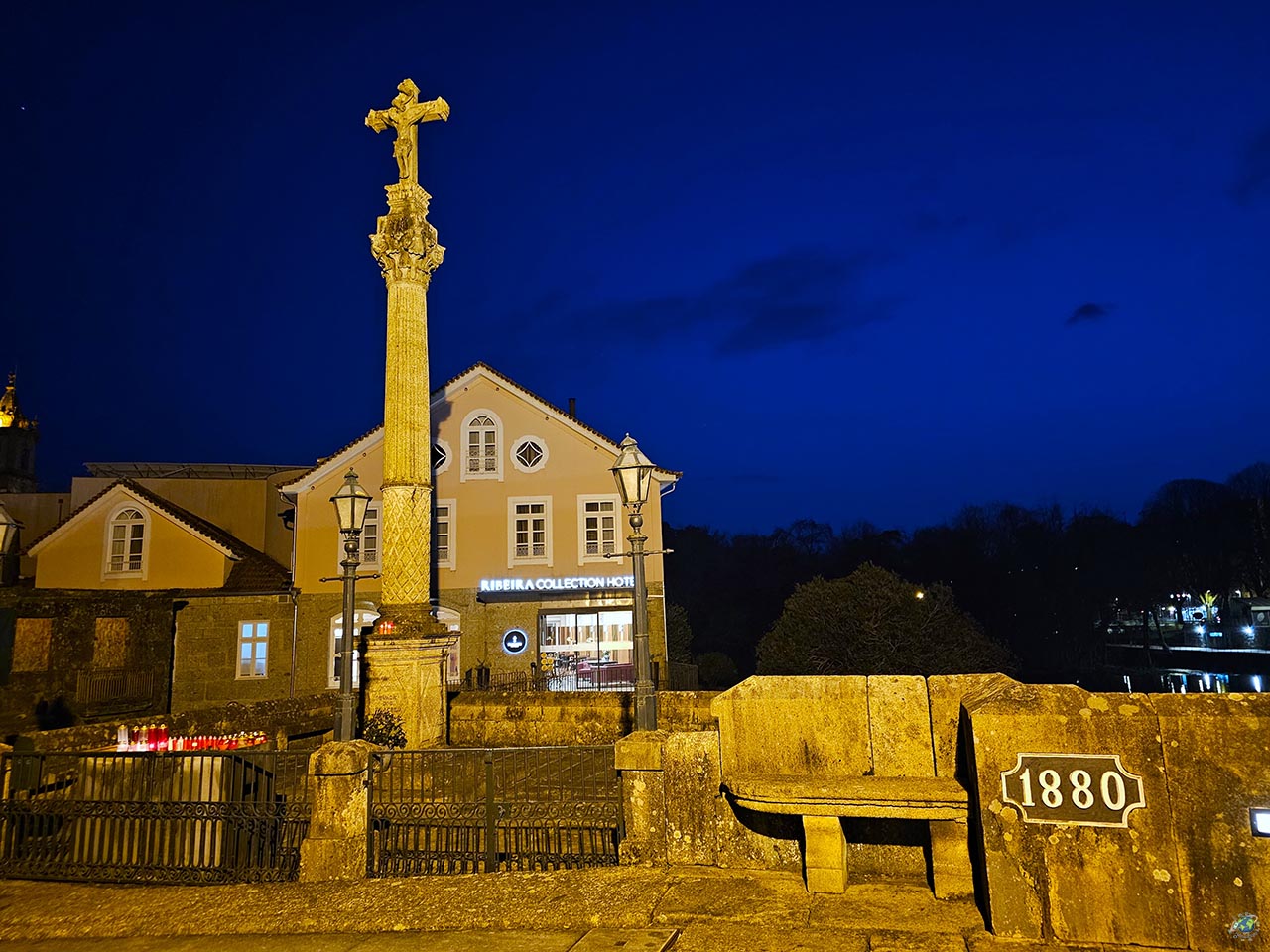 Es uno de los elementos más representativos del patrimonio religioso de la villa. Este crucero de piedra, de gran sencillez pero con fuerte carga simbólica, refleja la profunda tradición devocional de la zona. Ubicado en un punto estratégico, a orillas del río Vez, formaba parte de los espacios de paso y encuentro, donde vecinos y viajeros se detenían para rezar o encomendarse antes de cruzar el puente. Su presencia, además de religiosa, tiene un valor histórico ligado a la vida cotidiana del municipio. Hoy en día, continúa siendo un lugar emblemático dentro del conjunto urbano, integrado en uno de los rincones más fotografiados de Arcos de Valdevez. Muy cerca del Crucero llegarás a la Iglesia de la Sao Paio