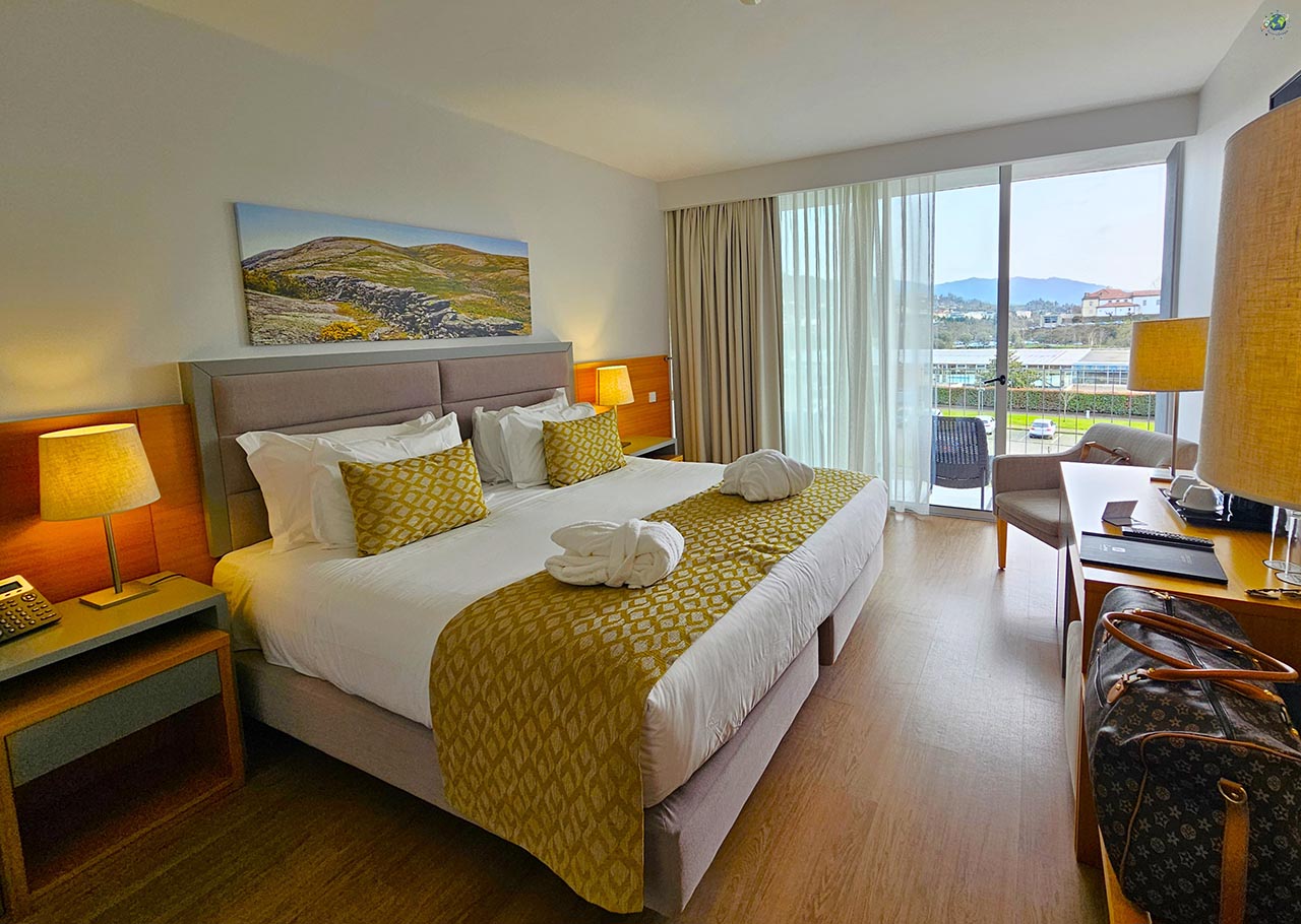 Durante nuestra visita a Arcos de Valdevez nos alojamos en el Hotel Luna Arcos, y la verdad es que es una opción muy recomendable si buscas comodidad, buena ubicación y tranquilidad. Está situado a orillas del río Vez, a solo unos pasos del centro, lo que permite moverse caminando a prácticamente todos los puntos de interés. Al mismo tiempo, el entorno es muy tranquilo, rodeado de naturaleza, así que combina muy bien ambas cosas. El hotel ha sido renovado recientemente, y eso se nota en las habitaciones, que son amplias, cómodas y con balcón en muchos casos . Algunas además tienen buenas vistas sobre la villa, lo que siempre suma.