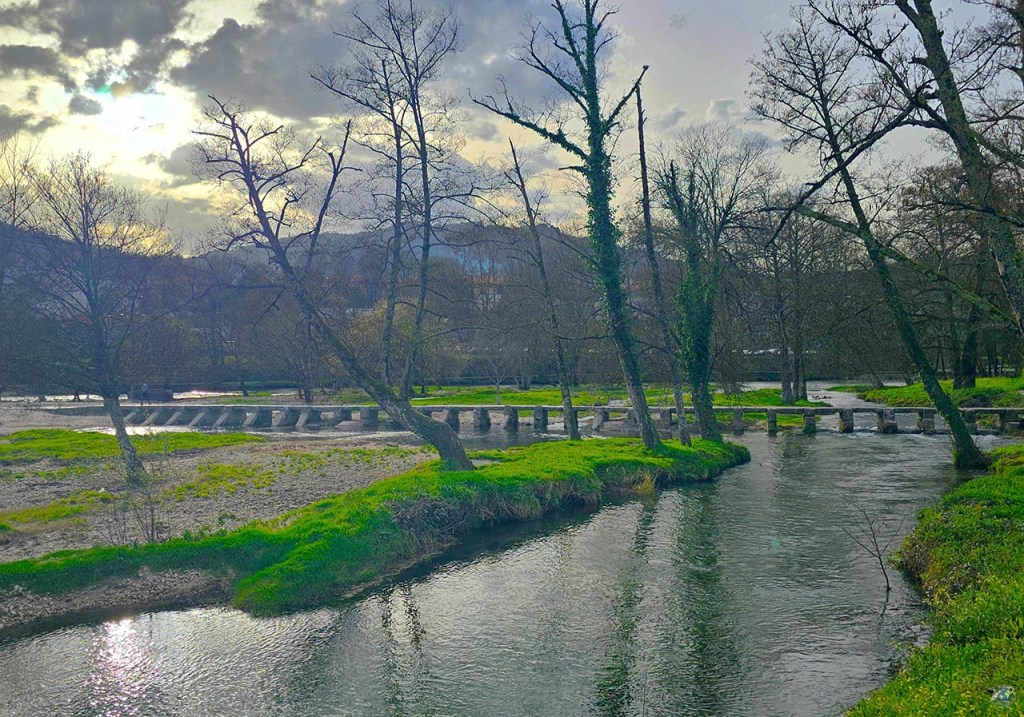 Una de las mejores formas de descubrir el entorno natural de Arcos de Valdevez es recorriendo la Ecovía do Vez, una ruta que acompaña al río a lo largo de varios kilómetros y que conecta la villa con Sistelo. El trazado completo ronda los 32 kilómetros, aunque está dividido en diferentes tramos, lo que permite adaptarlo fácilmente según el tiempo o las ganas que tengas ese día. No hace falta hacerla entera para disfrutarla, ya que hay zonas muy accesibles que ya merecen la pena por sí solas. El recorrido es muy variado y eso es precisamente lo que la hace tan especial. Hay partes que discurren junto al río, prácticamente llanas, y otras en las que el paisaje se vuelve más montañoso a medida que te acercas a Sistelo. A lo largo del camino se alternan pasarelas de madera, caminos de tierra, puentes y senderos que atraviesan zonas de bosque y pequeñas aldeas. Además de la naturaleza, la ruta permite descubrir muchos pequeños detalles del entorno: antiguos molinos, zonas de cultivo y rincones donde la vida rural sigue muy presente. Todo ello en un paisaje muy verde, típico del Alto Miño, donde el agua y la vegetación son los grandes protagonistas. Se puede hacer tanto caminando como en bicicleta, si no llevas bicicleta puedes alquilar una por 4 u 8 horas aqui y en general es una ruta bastante agradecida si se plantea por etapas. En conjunto, es un plan perfecto para complementar la visita a Arcos de Valdevez y conocer el territorio de una forma tranquila y muy cercana.