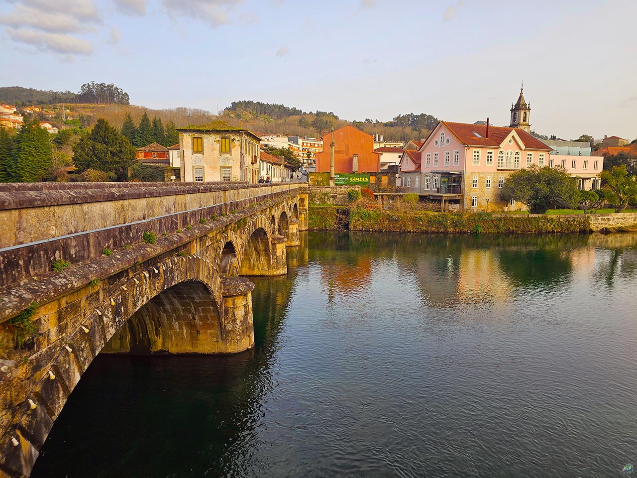 El puente que cruza el río Vez es uno de los símbolos de la villa. La estructura actual data de 1880 y sustituyó a un antiguo puente medieval de origen románico. El puente que une las dos orillas de Arcos de Valdevez es uno de los elementos más reconocibles de la villa. La estructura actual fue construida entre 1876 y 1880, sustituyendo por completo a un antiguo puente medieval del que hoy ya no se conservan restos visibles. Aquel primer puente, tenía una marcada estructura románica, con varios arcos de medio punto apoyados sobre sólidos pilares. Aunque su aspecto exacto se conoce solo a través de grabados y referencias históricas, se sabe que jugó un papel fundamental en el desarrollo de la localidad. Durante siglos, este paso sobre el río Vez fue clave para la comunicación y el comercio, especialmente en relación con la feria que se celebraba en la villa y que llegó a tener gran importancia en la región. Su ubicación favoreció la conexión con otras rutas y contribuyó al crecimiento económico y social de Arcos de Valdevez. Hoy, el puente del siglo XIX mantiene esa función de unión entre ambas orillas, pero también se ha convertido en uno de los puntos más emblemáticos del paisaje urbano, imprescindible en cualquier paseo por la villa. Su ubicación lo convierte en uno de los puntos más representativos del paisaje urbano y un lugar clave para entender el desarrollo histórico del municipio. En un extremo del puente verás el Crucero del Señor de los Milagros