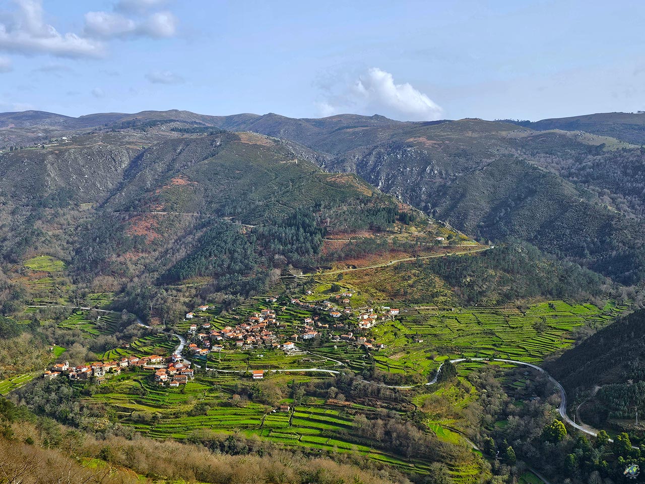 A pocos kilómetros de Arcos de Valdevez se encuentra Sistelo, una de las aldeas más sorprendentes del norte de Portugal. Este pequeño núcleo rural es conocido por sus espectaculares bancales que cubren las laderas de la montaña, creando un paisaje muy característico que le ha valido el apodo de “pequeño Tíbet portugués”. Estos bancales, construidos a lo largo de siglos para el cultivo, dibujan un entorno único donde la mano del hombre y la naturaleza encajan a la perfección. No es de extrañar que Sistelo haya sido reconocida como una de las 7 Maravillas de Portugal en la categoría de aldea rural. Aunque el propio pueblo tiene mucho encanto, con casas de piedra y un ambiente muy tranquilo, gran parte de la experiencia está en contemplar el paisaje desde las alturas. Para ello, hay varios miradores repartidos por la zona, siendo uno de los más recomendables el Miradouro da Estrica.